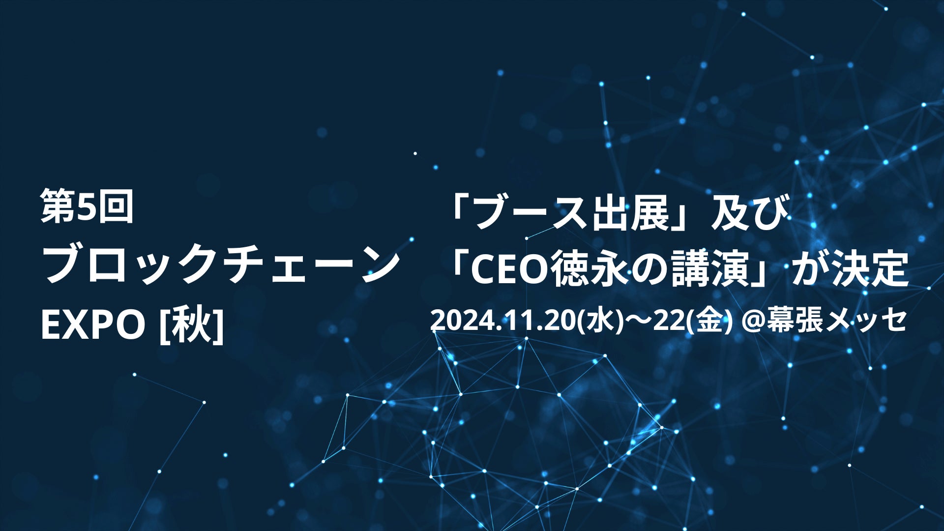 幕張メッセにて開催される「 第5回 ブロックチェーン EXPO 秋」にブース出展及びCEO徳永の講演が決定しました。