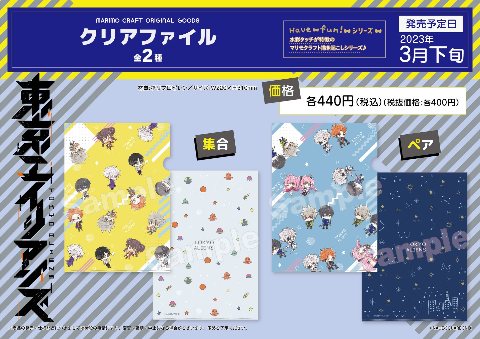 ■クリアファイル (左から)集合/ペア 各440円(税込)