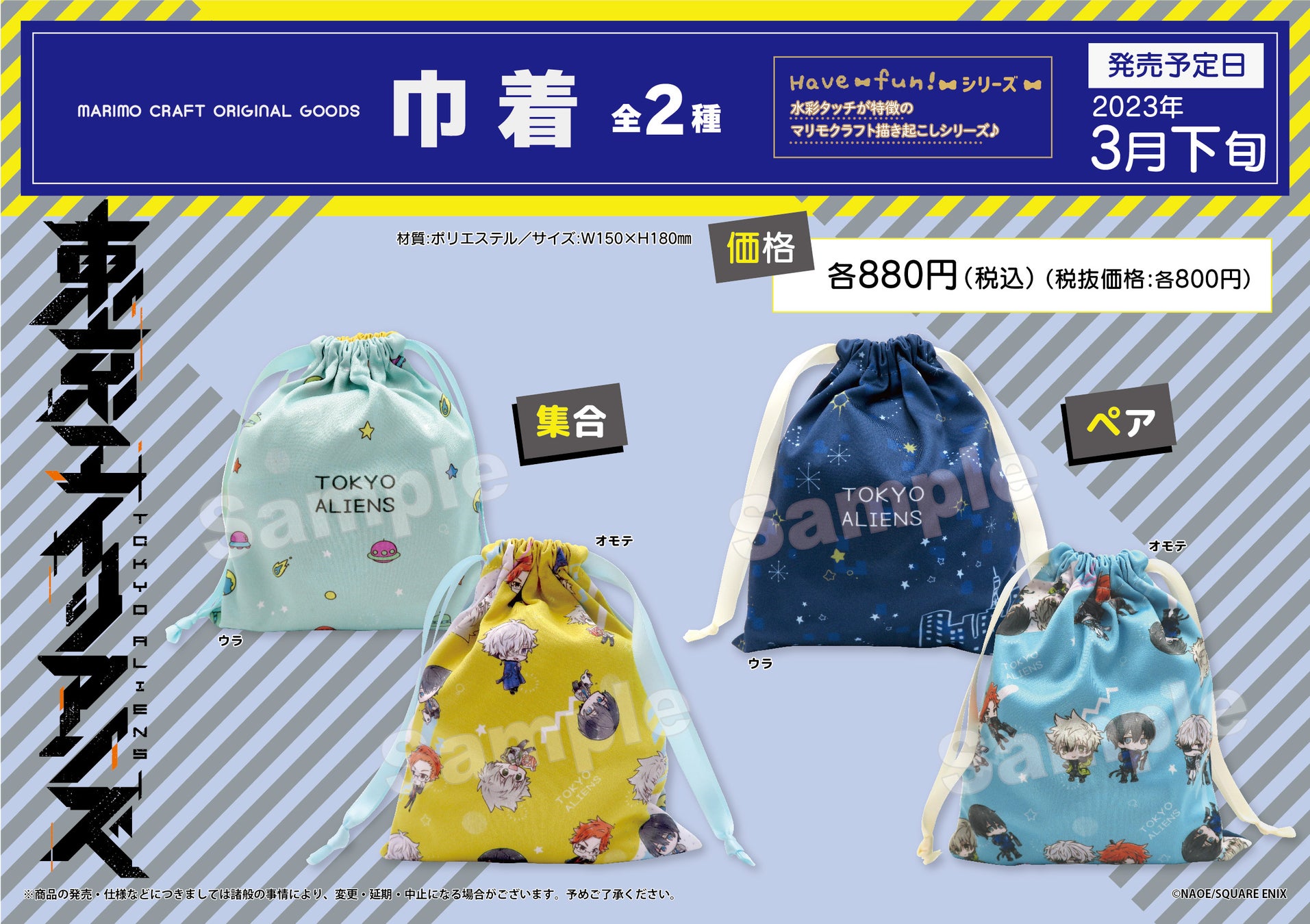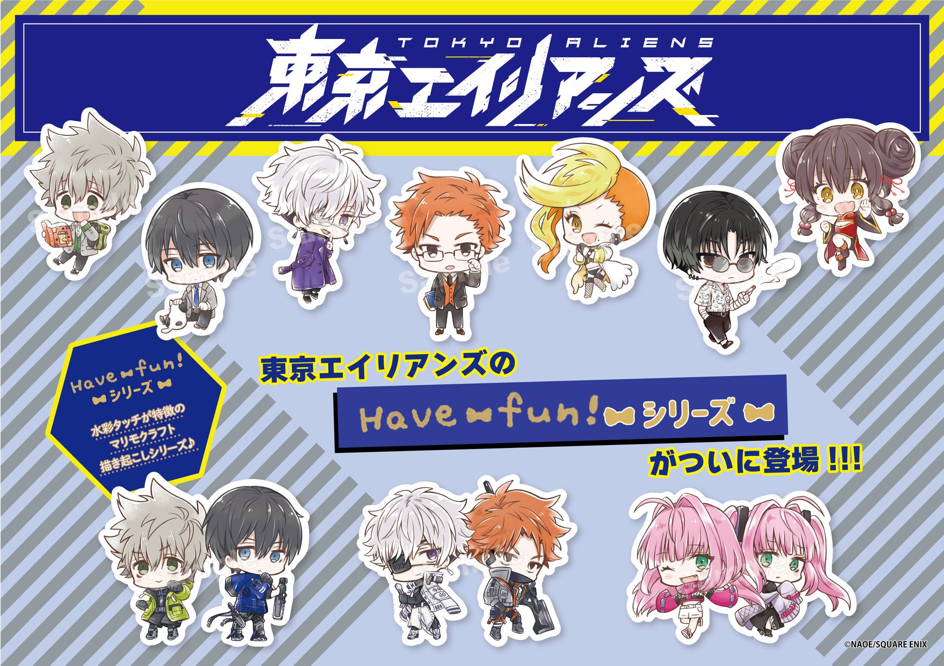 水彩タッチの淡く優しい色味が特徴の「Have fun!シリーズ」は、マリモクラフトオリジナルの描き起こしイラストです。今回このシリーズから漫画『東京エイリアンズ』のグッズが登場いたします。