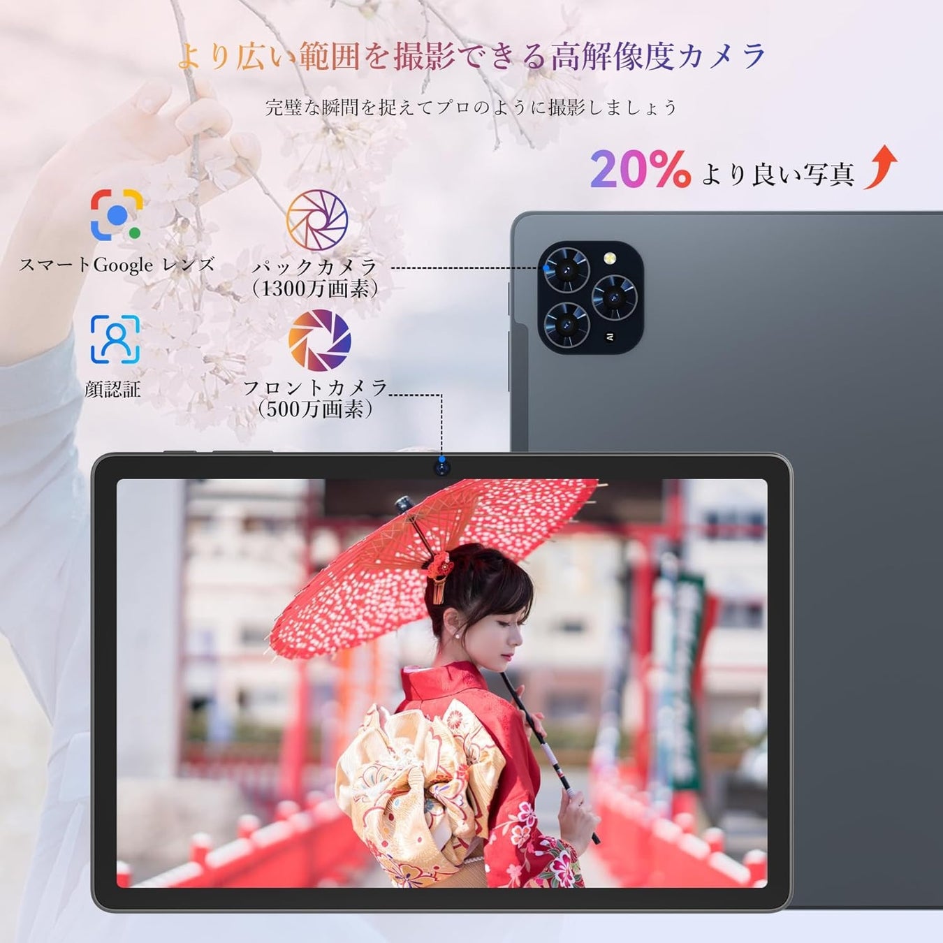 CPU(SoC)には「Unisoc T615 オクタコアプロセッサー」を、RAM(メモリ)には8GBを採用。一般的なタブレット用途は問題なくスムーズにこなせるだけの性能を備えています。なお、最大16GBの仮想RAM拡張が可能です。