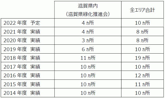 「平和の緑づくり」は、滋賀県内は公益財団法人滋賀県緑化推進会が中心となり県内の保育園、小学校や公共施設等に県の木(もみじ)をシンボルツリーとして配布するとともに、もみじの周辺の緑化整備を推進していく活動です。2014年5月より開始しました。