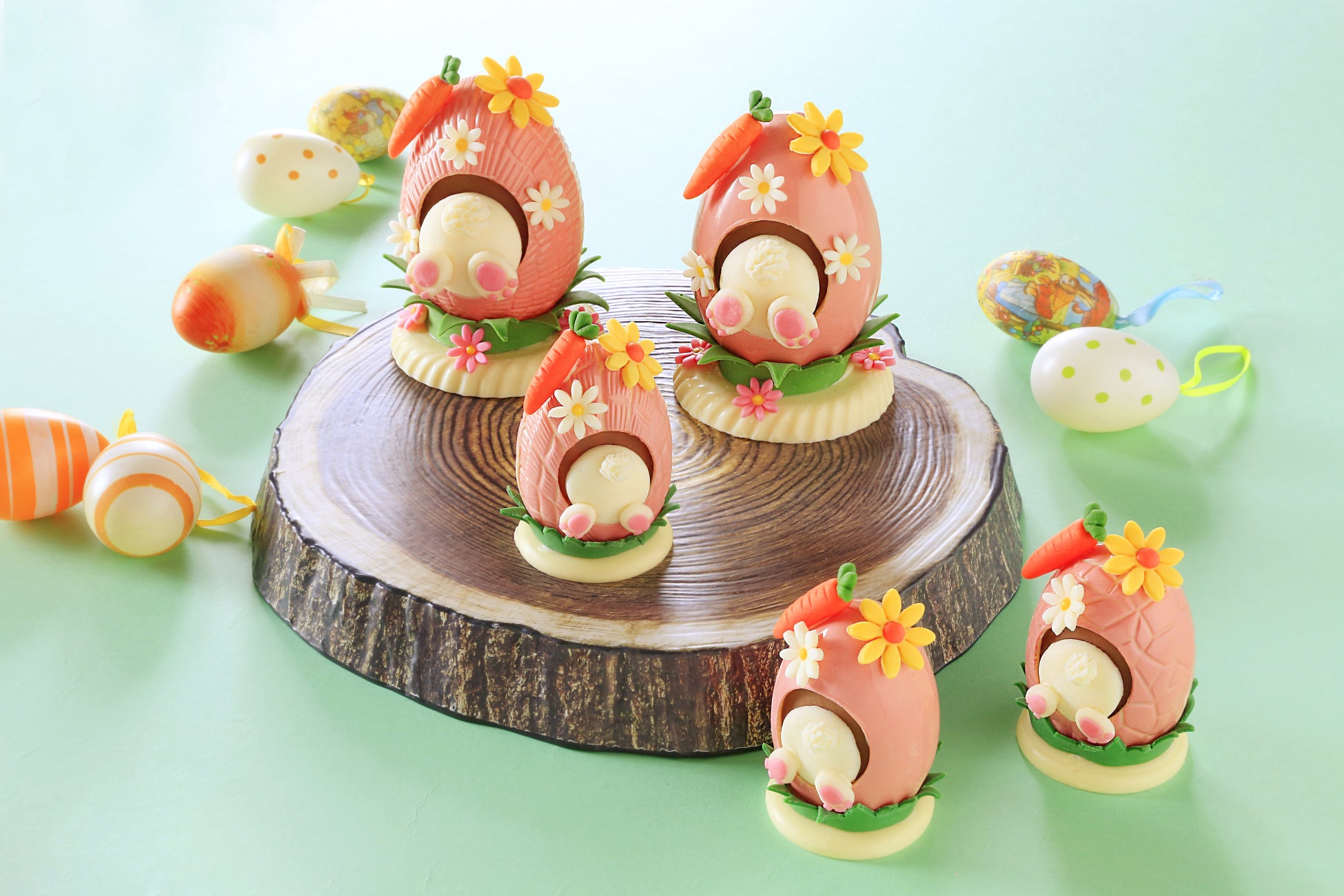 今年のイースターエッグは、イースターにはかかせないイースターエッグとイースターバニーのコラボレーションでご用意。エッグチョコレートの中に落っこちたお茶目で愛らしいウサギを、ホワイトチョコレートで表現しました。エッグの中にはキャラメリゼしたアーモンドをチョコレートでコーティングしたアマンドショコラが入っています。春に可愛らしい期間限定のチョコレートスイーツを、どうぞお楽しみください。