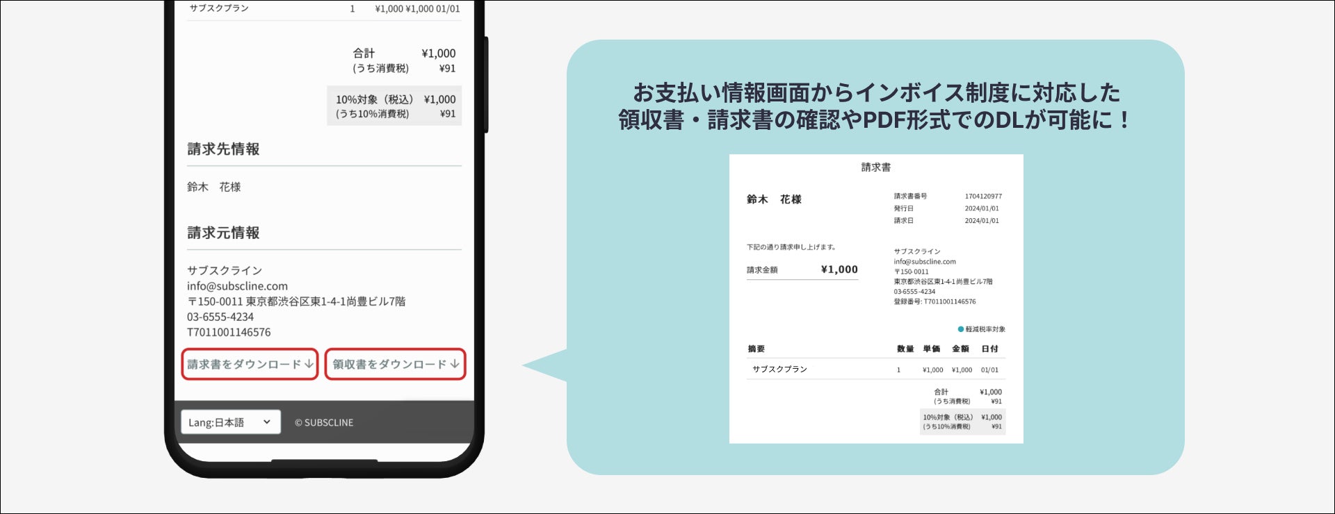 サブスクラインがインボイス制度に対応!サブスク・モバイルオーダー・EC・予約時決済でインボイスに対応した請求書を発行可能に