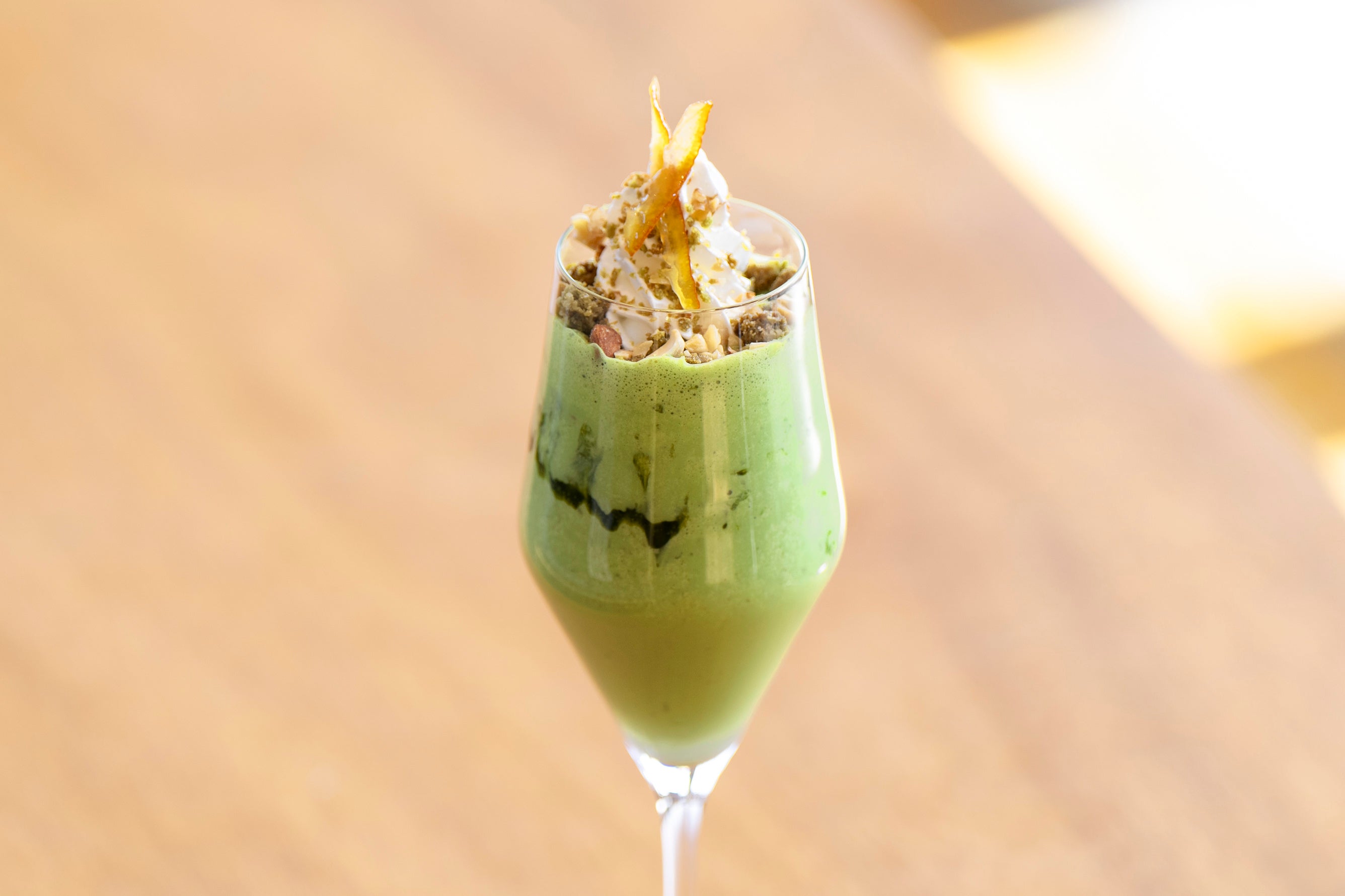 抹茶アイスをベースにカフェに併設しているSTONG bakery自家製のザクザク食感の抹茶クランブル、ホイップクリームを組み合わせました。隠し味にオレンジピールを使用し、ほろ苦さの中に爽やかさも感じるドリンクです。