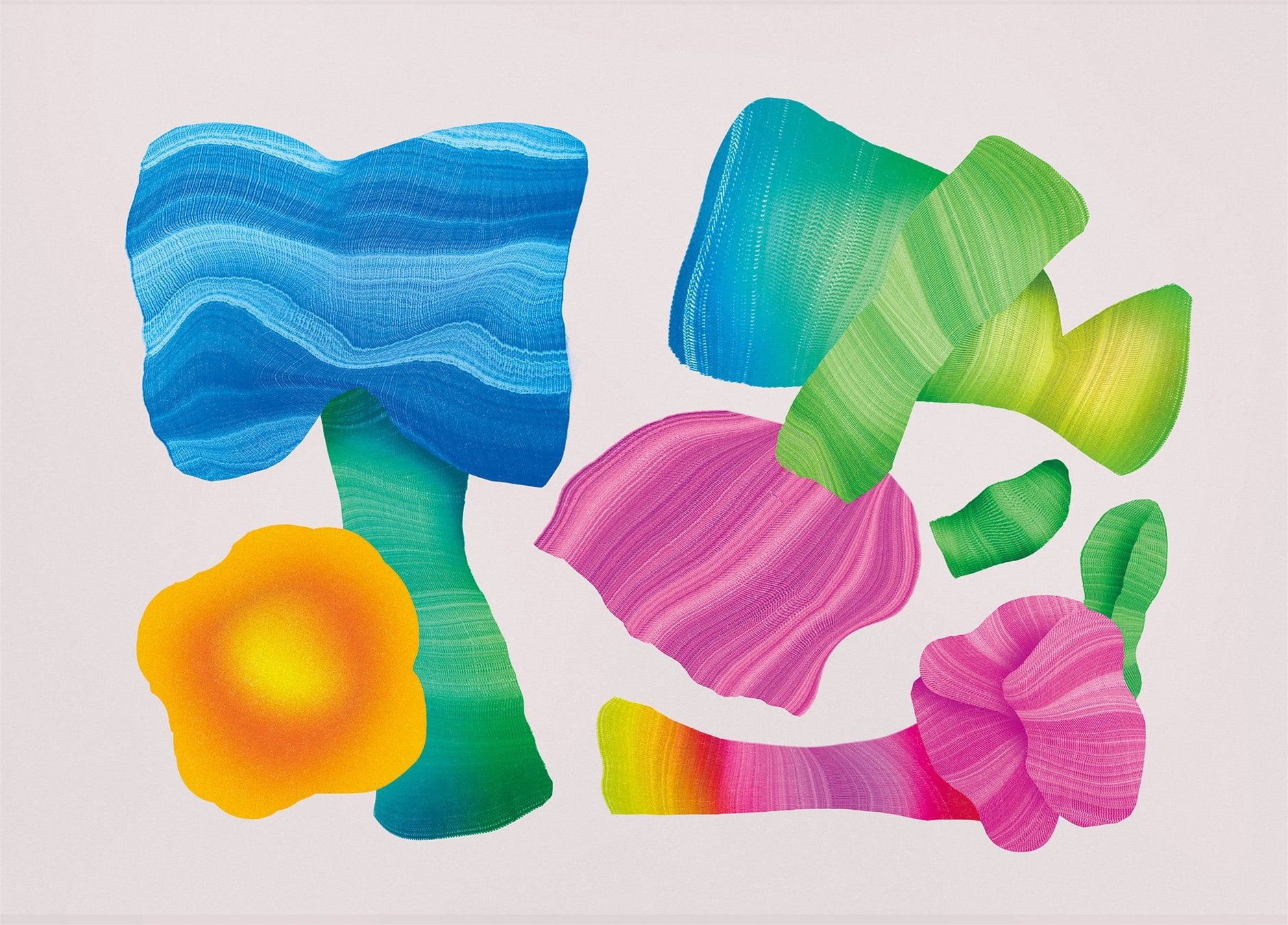 沖縄県出身の安里さんは、光を感じる色彩と柔らかい形を意識した作風で、グラフィックデザイナーやイラストレーターとして活躍。