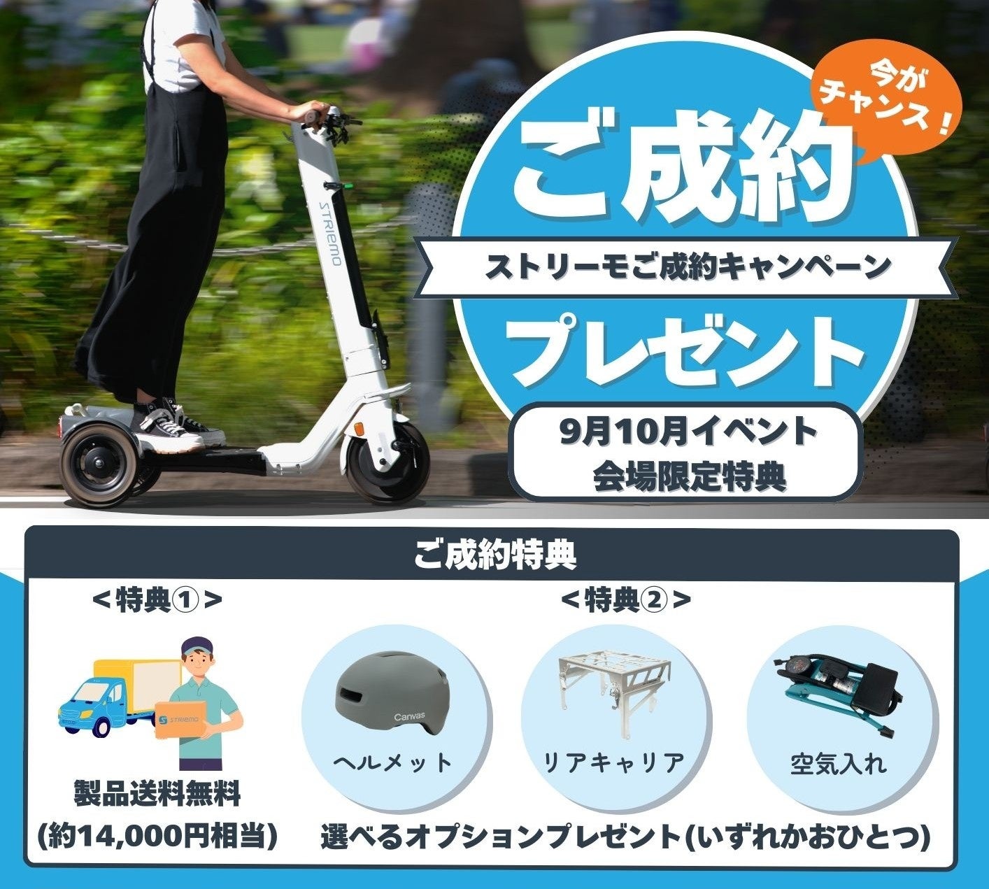 自分のペースで移動できる立ち乗り三輪モビリティを開発する株式会社ストリーモ(本社:東京都墨田区、代表取締役:森 庸太朗、以下「当社」)は、9月から10月にかけて福岡県、群馬県、岐阜県で開催される4つのイベントにストリーモS01JTA(特定小型原付)を出展いたします。