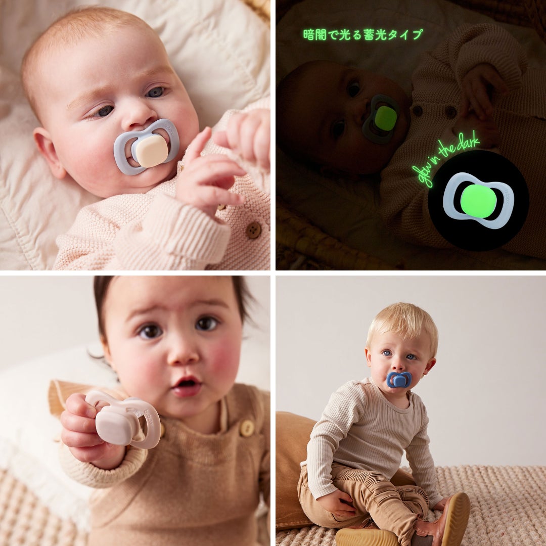 新生児から使えるビーボックスのおしゃぶりは、機能的であると同時に美しい見た目で、赤ちゃんの心地よい成長をサポートします。