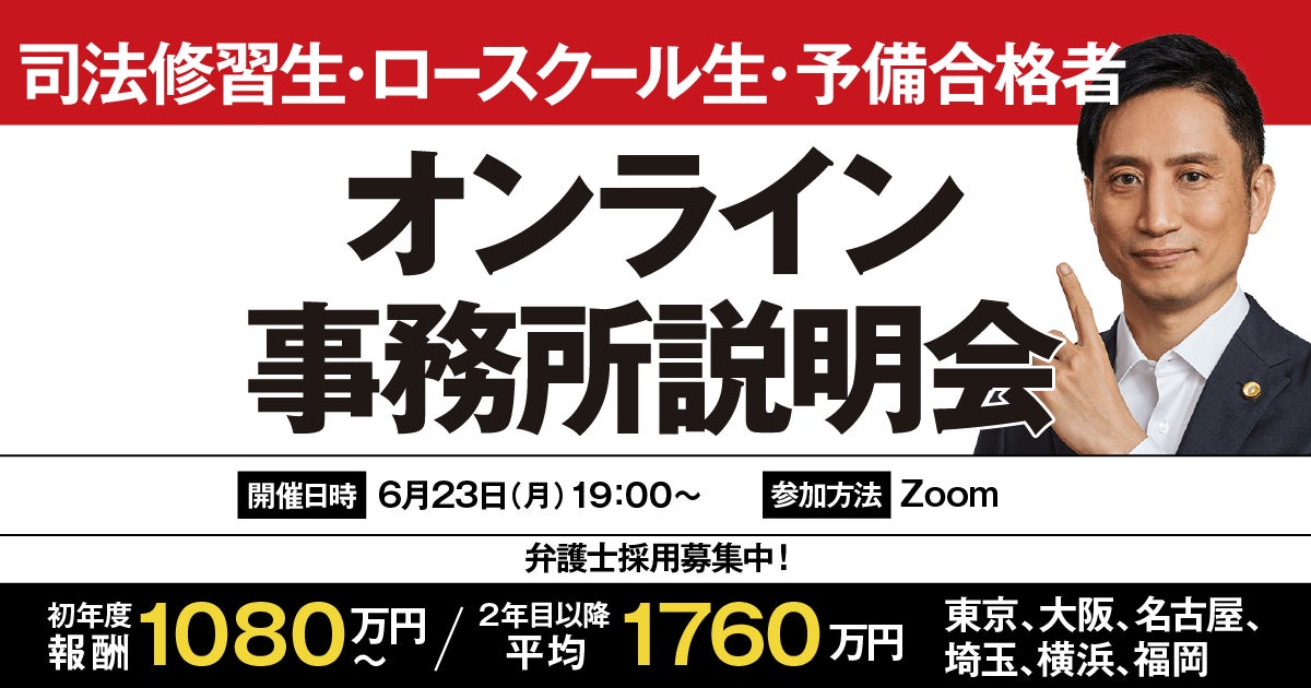 現役弁護士、司法修習生、ロースクール3年生、予備試験合格者を対象としたオンライン事務所説明会を開催します。