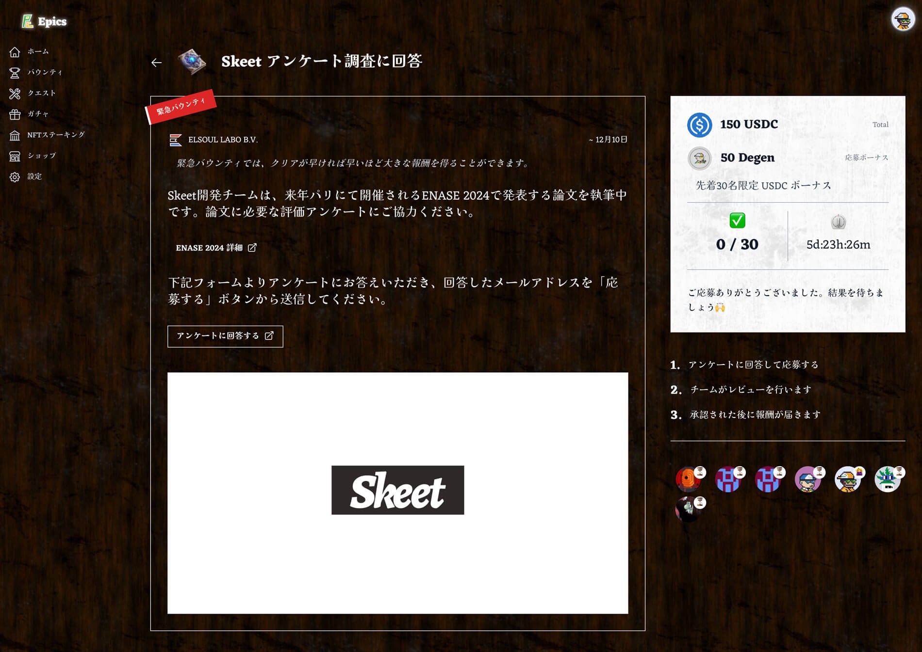 Epics Alpha では、ソフトウェアのバグや改善点に対して、懸賞金を仮想通貨で提供することにより、グローバルなコミュニティからの協力を得て、問題の早期解決を図ることができました。この取り組みは、世界中の開発者たちによる迅速な対応とイノベーションを促進しました。
