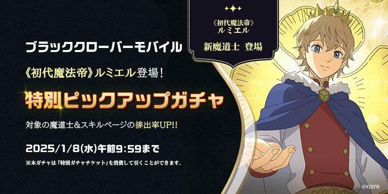アプリゲーム『ブラッククローバーモバイル』1.5周年イベント開催中!今ならゲーム内イベントでSSR魔道士「《初代魔法帝》ルミエル」が貰える!