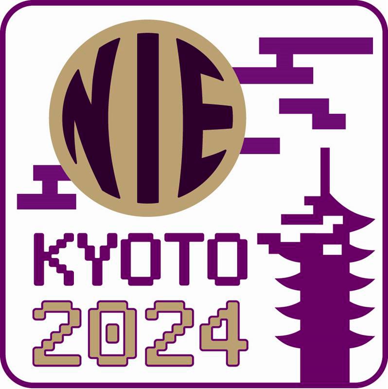 日本画風の雲を幾何学的に描き、五重塔と共に京都らしさを表現。ドット(点)や長方形の質感、組み合わせで、大会スローガンにある「デジタル・多様性社会の学び」を表した。「NIE」の文字で構成した月が学びの道を照らす図柄とした。