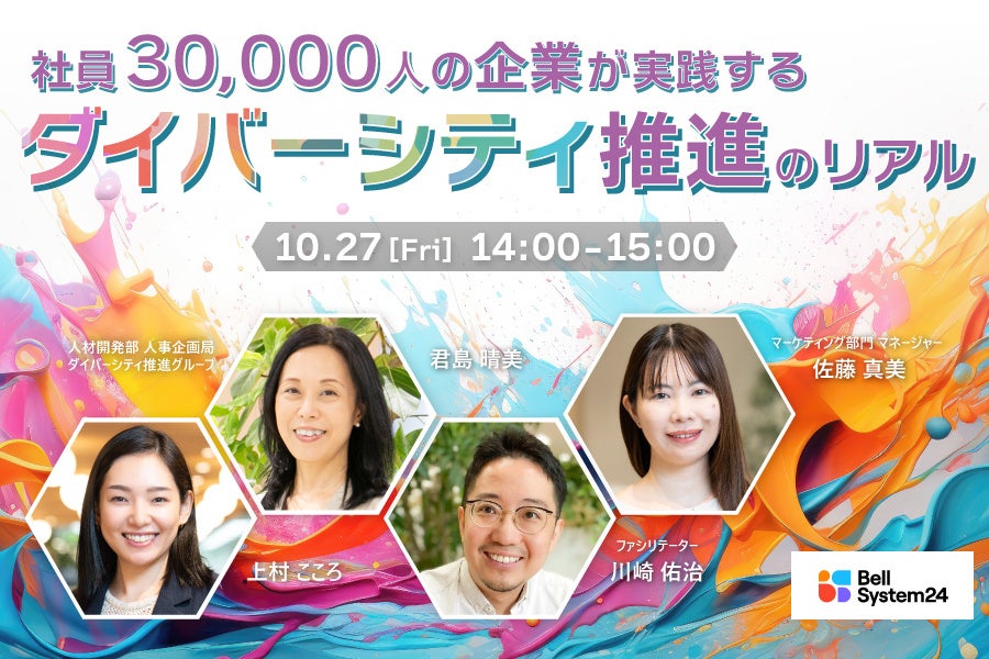 株式会社ベルシステム24(本社:東京都港区、代表取締役 社長執行役員:野田 俊介、以下:当社)は、「社員3万人の企業が実践するダイバーシティ推進のリアル」と題したオンラインセミナー(以下:本セミナー)を、10月27日(金)に開催します。