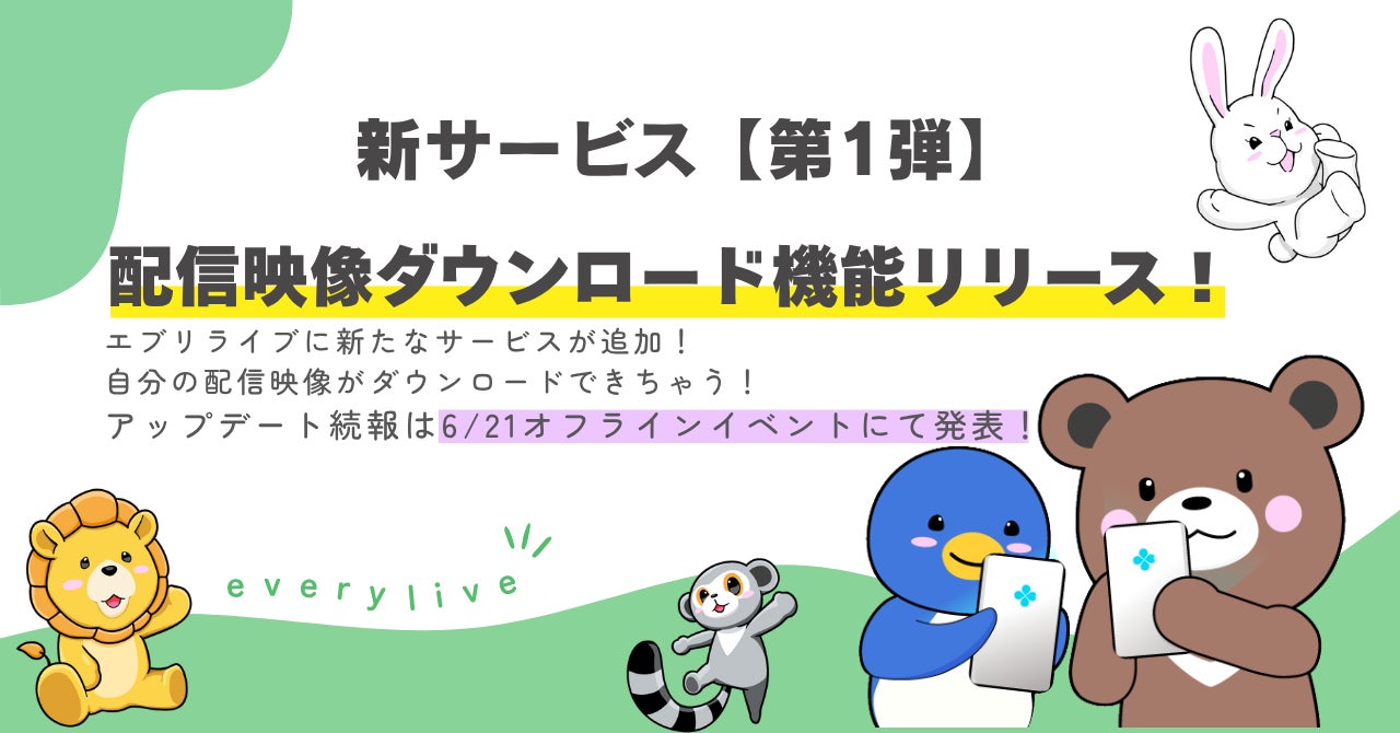 ライブ配信アプリ「everylive(エブリライブ)」に新機能追加!「配信映像のダウンロード」で自身の活動をよりシェアしやすくなります!6月21日開催のイベント「超超祭」で新規プロジェクトも公開予定!