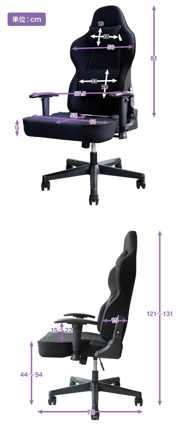従来のモデルをさらに進化させ、通気性に優れたファブリックを採用。長時間のゲームプレイや作業中も肌に優しく、快適な座り心地を提供します。