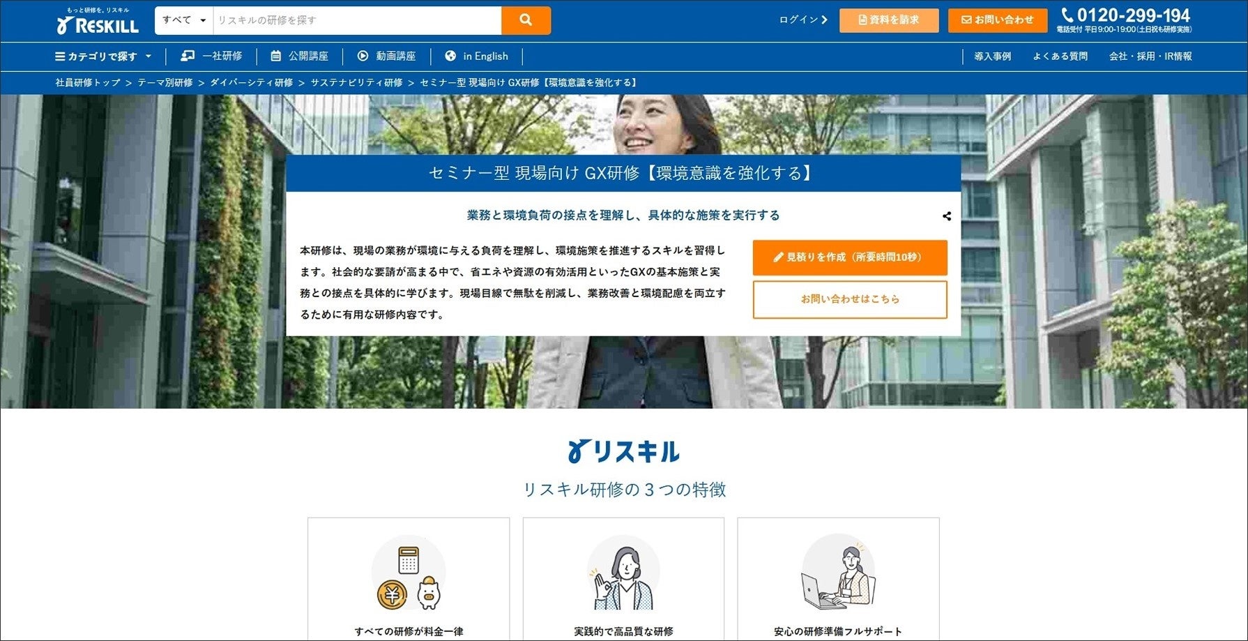 株式会社リスキルは、現場目線で環境施策を推進する「セミナー型 現場向け GX研修」をリリースいたしました。本研修は、社会的な要請が高まるグリーントランスフォーメーション(GX)について、実務との接点を明確にすることを目的としています。