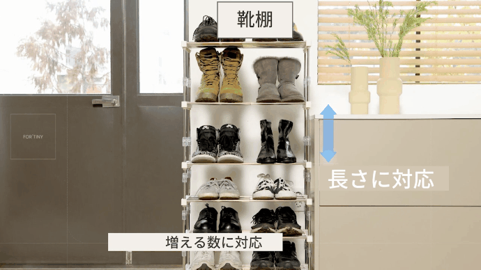 タイトル:隙間やスペースに合わせて棚が欲しい!を可能にする収縮と重ねのステンレス製棚