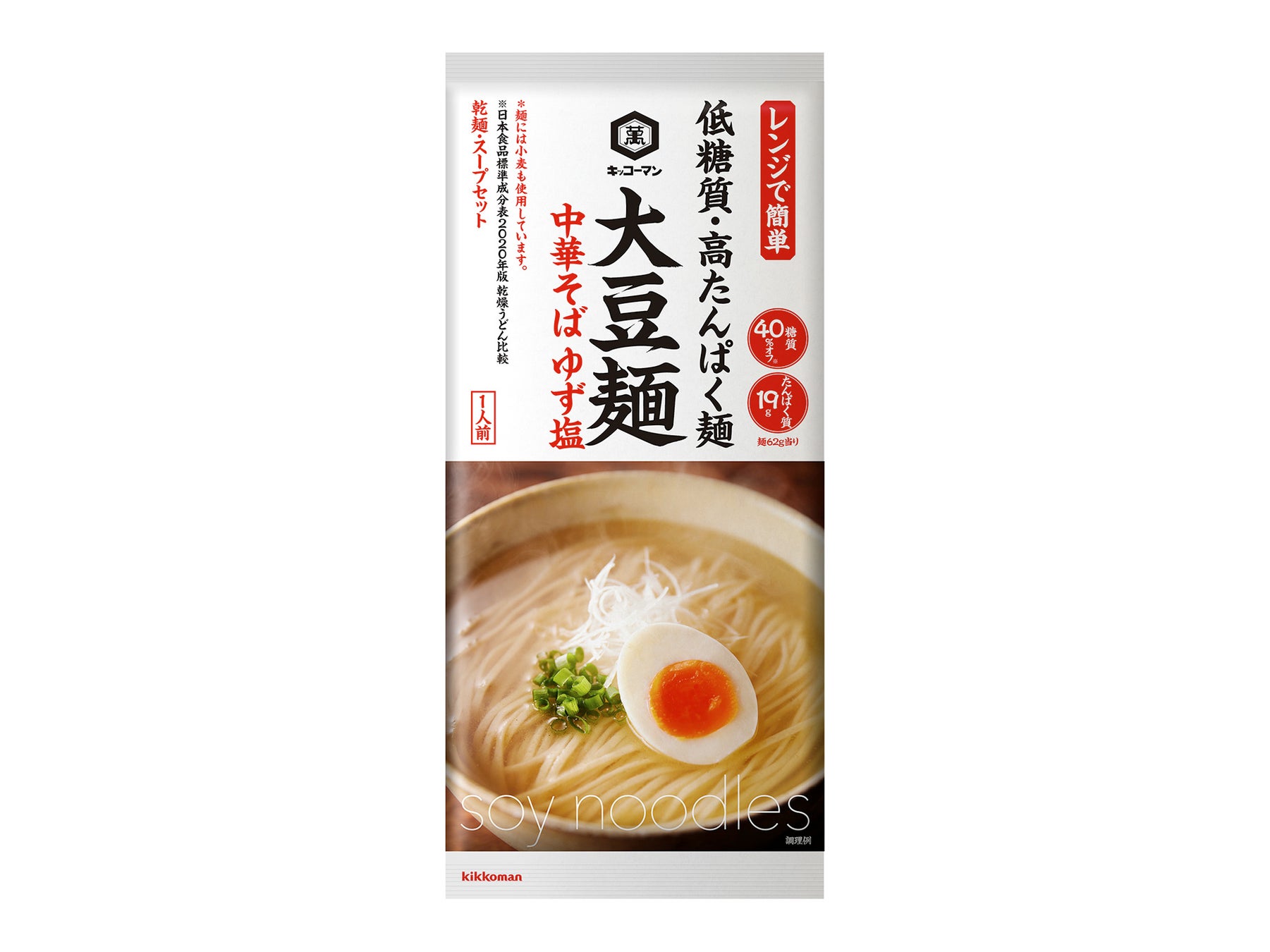 低糖質・高たんぱくな麺と専用のスープやソースがセットになった「大豆麺」シリーズ「中華そば ゆず塩」新発売!