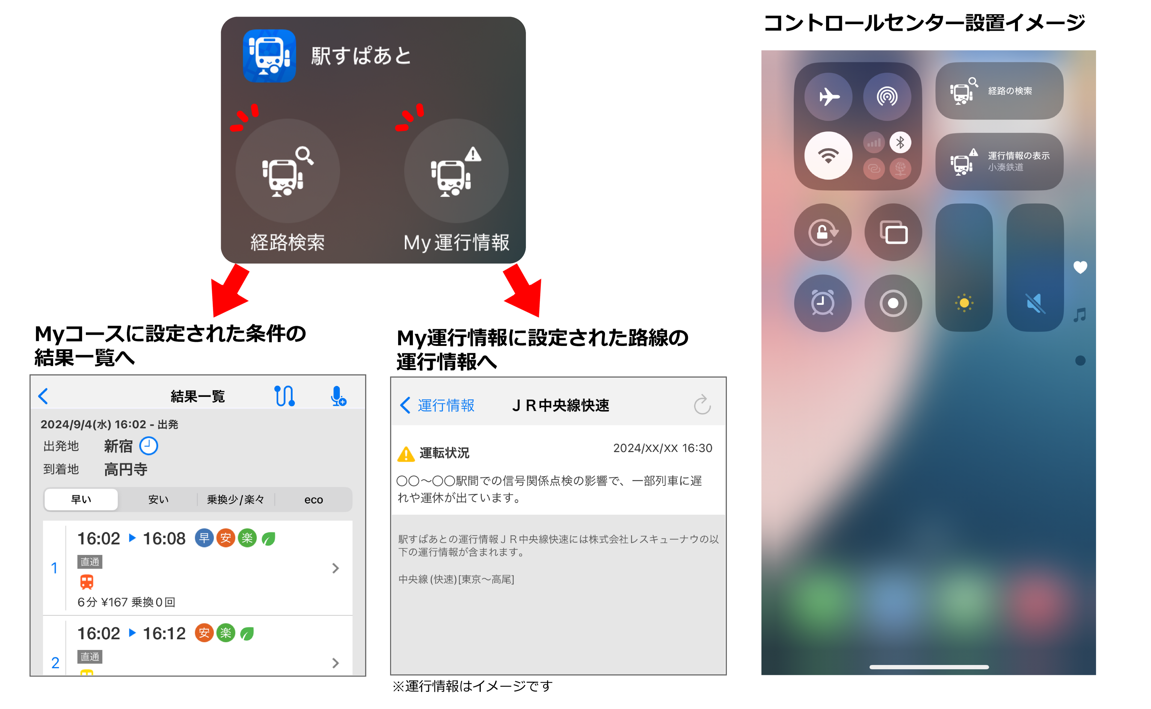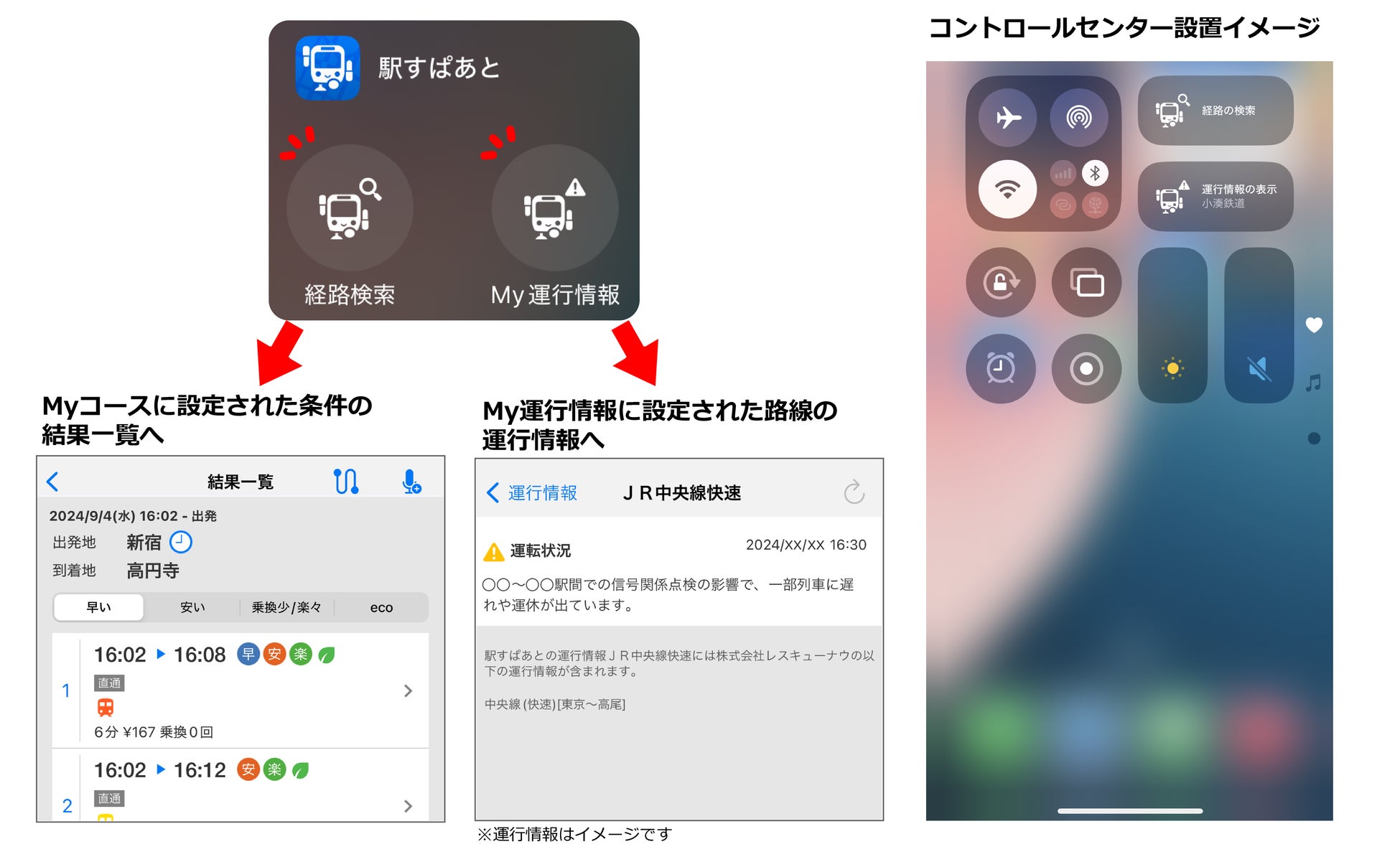 ■コントロールセンターから経路検索/運行情報へ即座にアクセス可能に!
