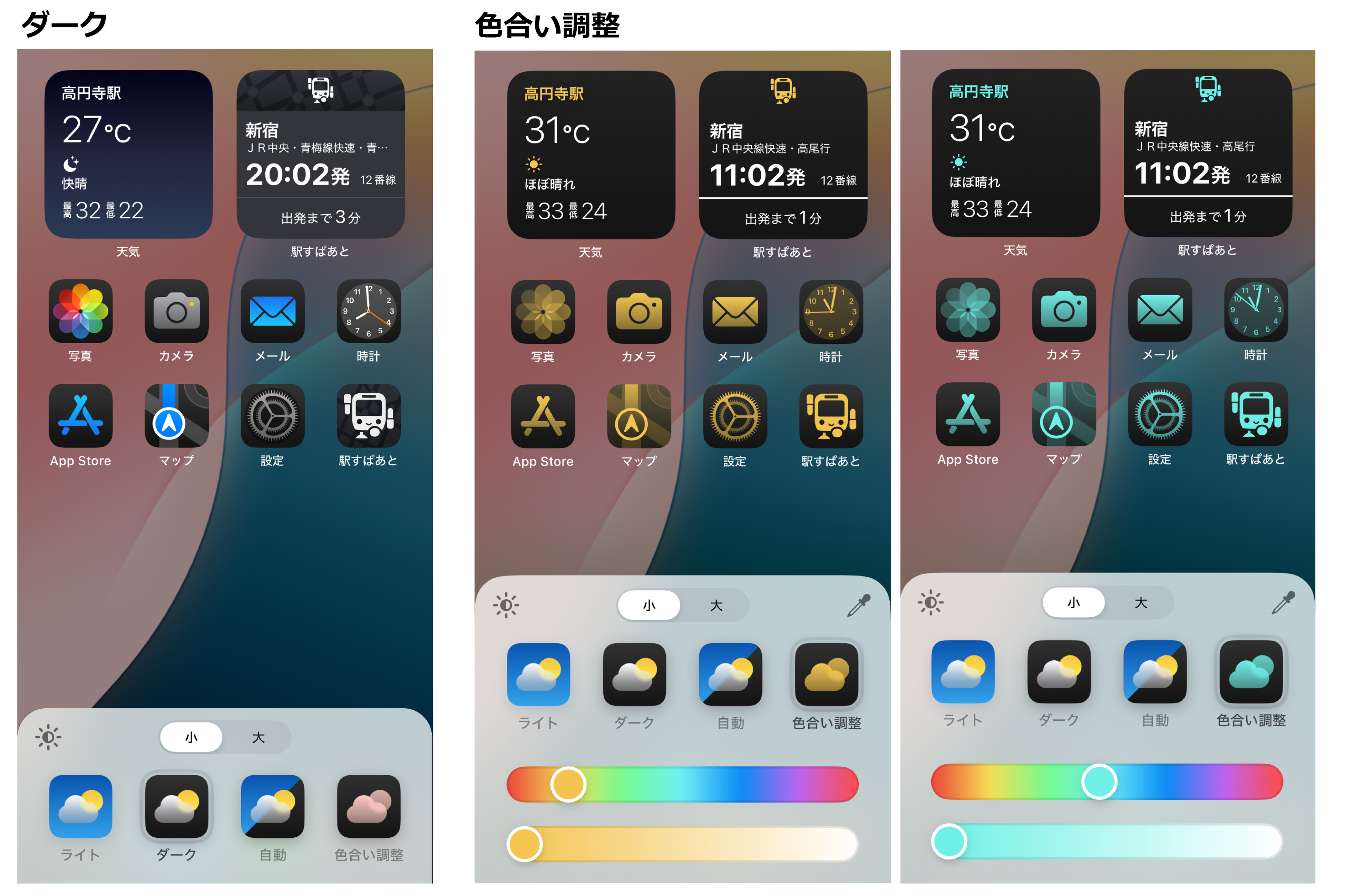 ■背景色や色合い調整ができる「ダークルック」に対応したアプリアイコンを用意