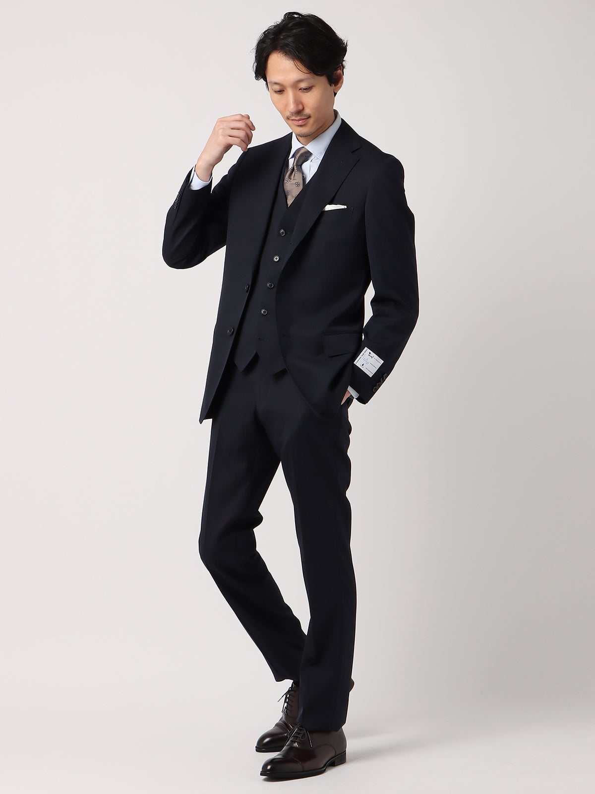 ・ジレ付きスリーピーススーツ/ネイビー×ピンヘッド(MTR30051-MB):ストライプ(MTR30052-MT)