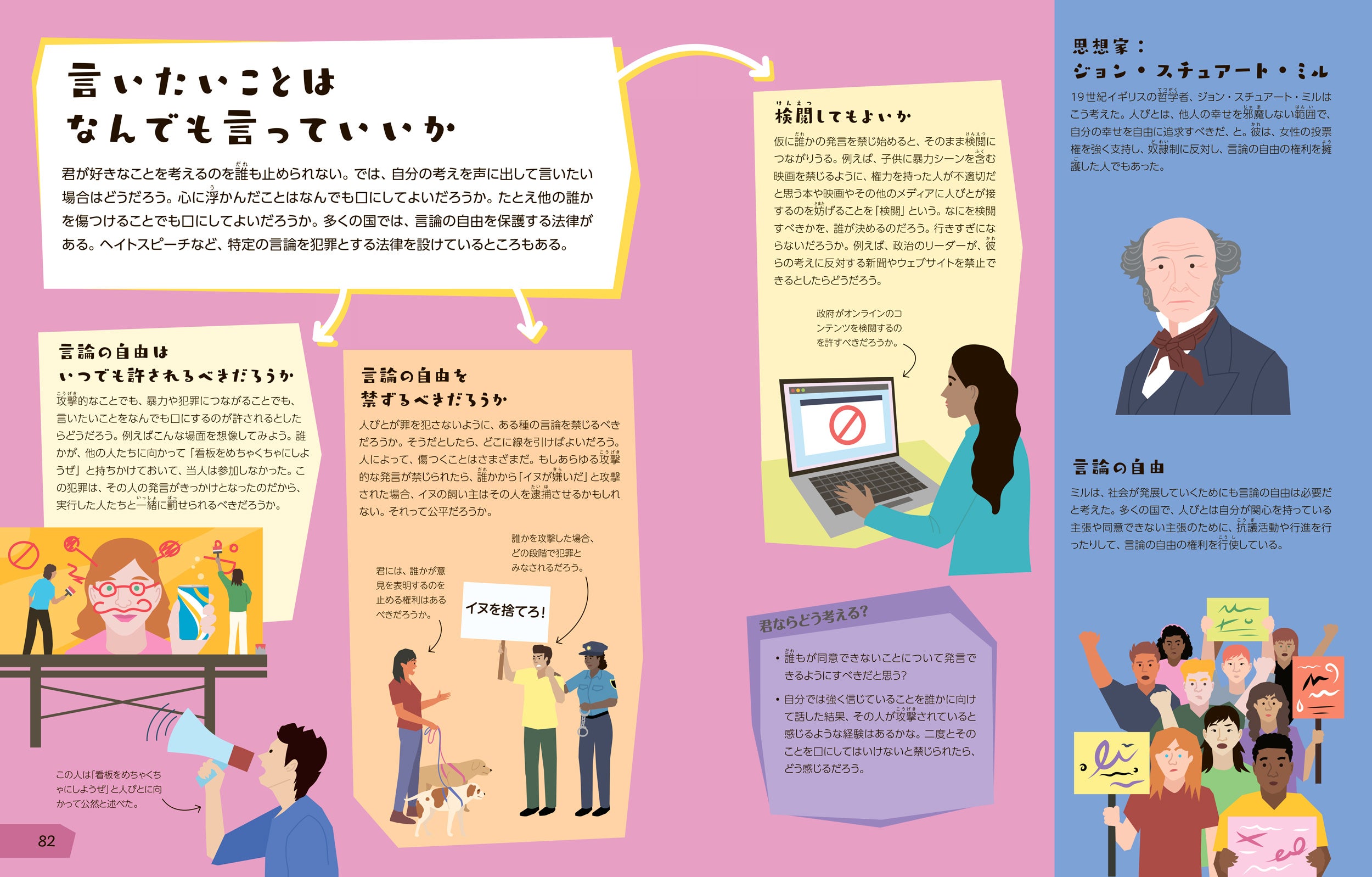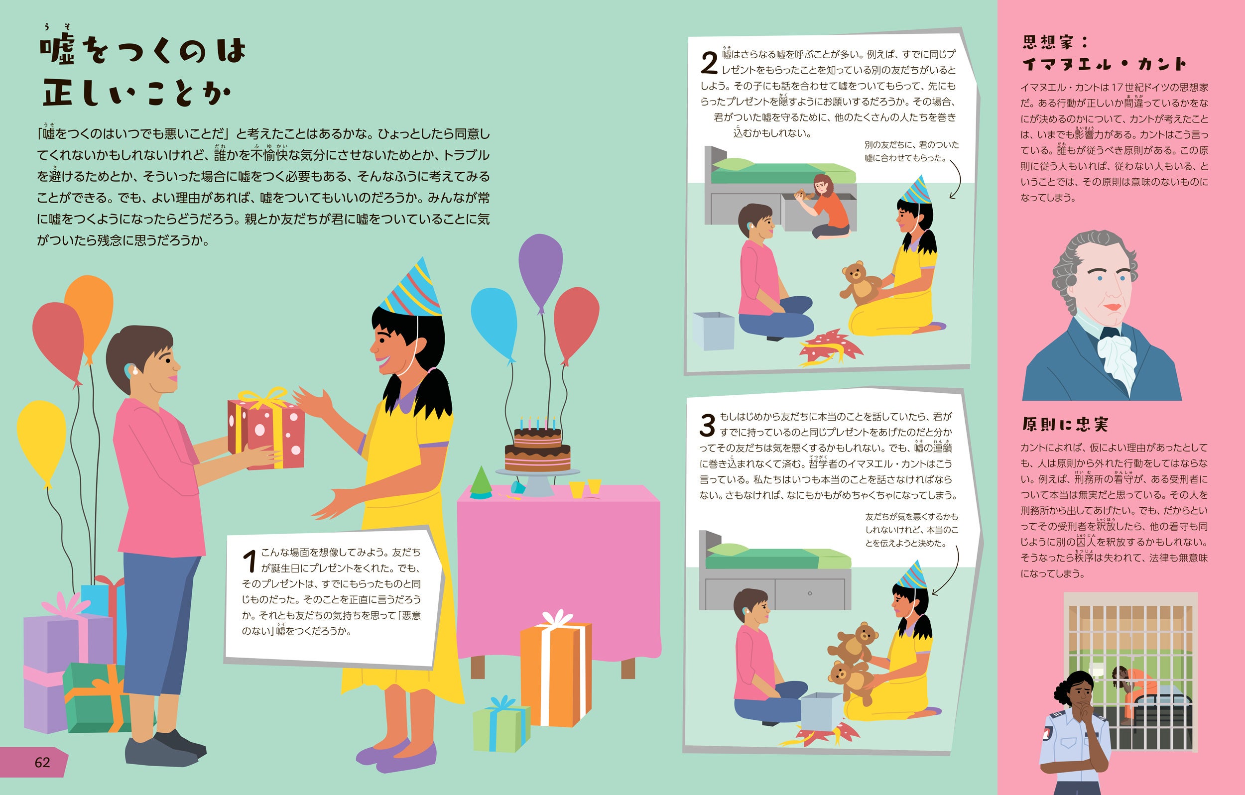 正しいか、間違っているか、どうやって見分けられる?/噓をつくのは正しいことか/善良であるべき?/目的は手段を正当化するだろうか/幸せとはなんだろう/不幸な人間か 幸せなブタか/私は自由だろうか/私は幸せな囚人か/言いたいことはなんでも言っていいか