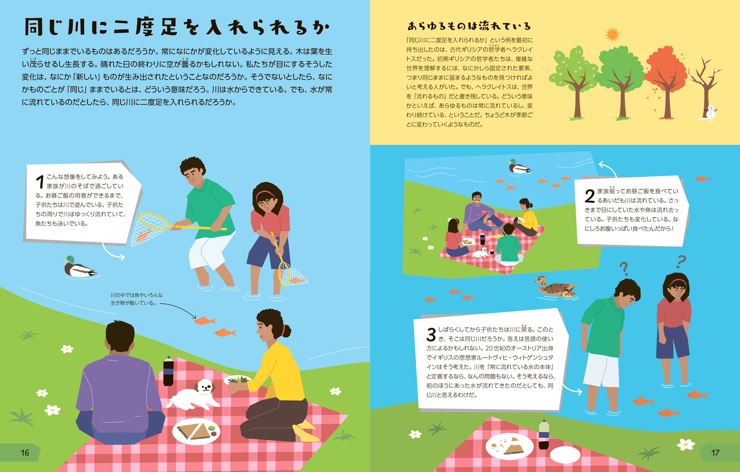 一番小さいものはあるのか/無はあるの?/現実ってなに?/同じ川に二度足を入れられるか/新品? それとも新品同様?/私はなにからできている?/私って?/時間を旅できるだろうか/どうして自分はここにいるの?/神は存在するの?/なぜ苦しみは存在するのだろう