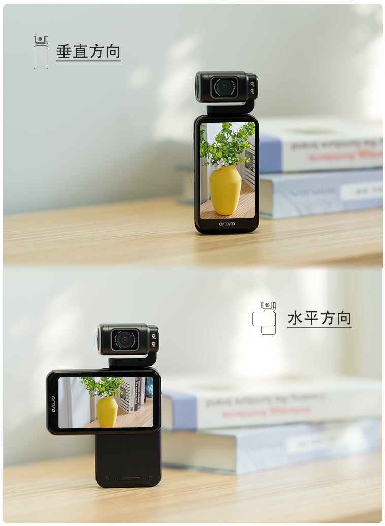 3.5インチ大画面は、明瞭な視野と撮影体験を提供します。Vlogの録画は、水平・垂直の撮影モードを簡単に切り替えることで、より手軽になります。