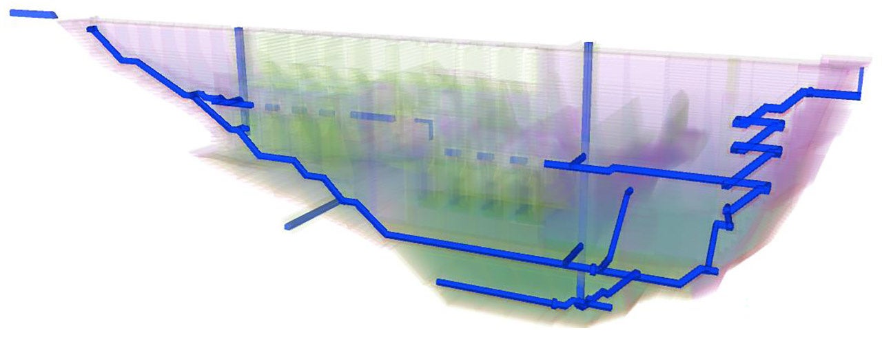 新丸山ダム建設工事では、2025年度以降に着工するダムの堤体工事において、堤体内部の監査廊(※2)でもフルプレキャスト化の実現性を計画検討しています。今回と同様、工程の短縮効果が見込まれる部分には建設用3Dプリンター製のプレキャスト部材を適用することで、プレキャスト化による現場の生産性向上につなげていきます。