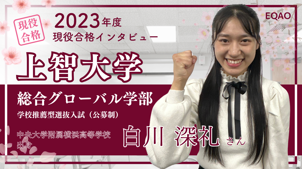 ・上智大学公募推薦専門塾EQAOは上智大学文化祭ソフィアンズコンテスト協賛起業です。 ・上智大学公募推薦専門塾EQAOは上智大学生インフルエンサーの「上京大生いとをかし」さんが上智専門コースのアンバサダーに就任しています。 ・2024年度(4期生)の上智専門コースの受け入れ可能数は50名とさせていただきます。 |
