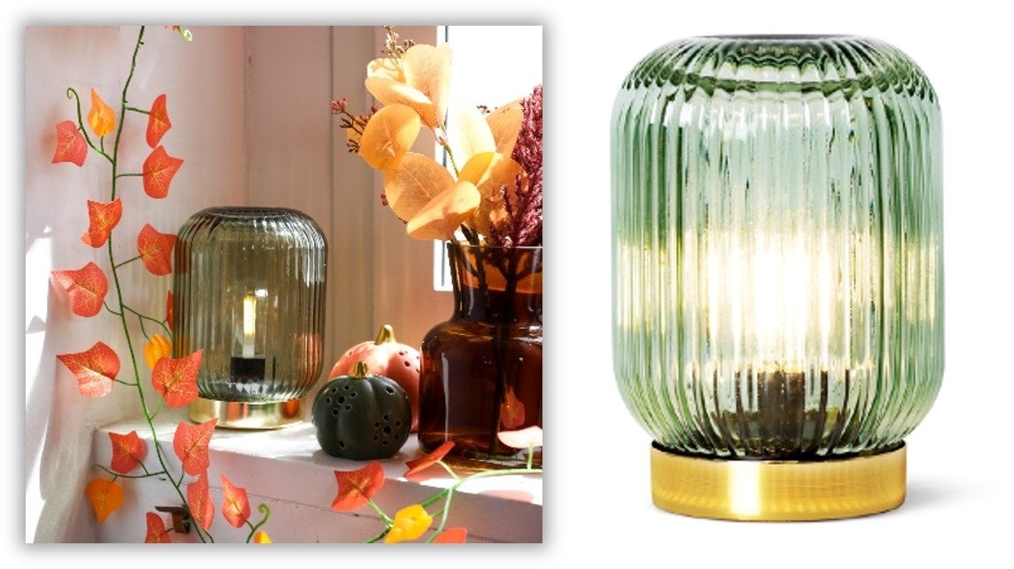 高さ15cmのランプは電池式。やわらかく、あたたかい光がお部屋をふんわり照らします。間接照明で癒しをプラス