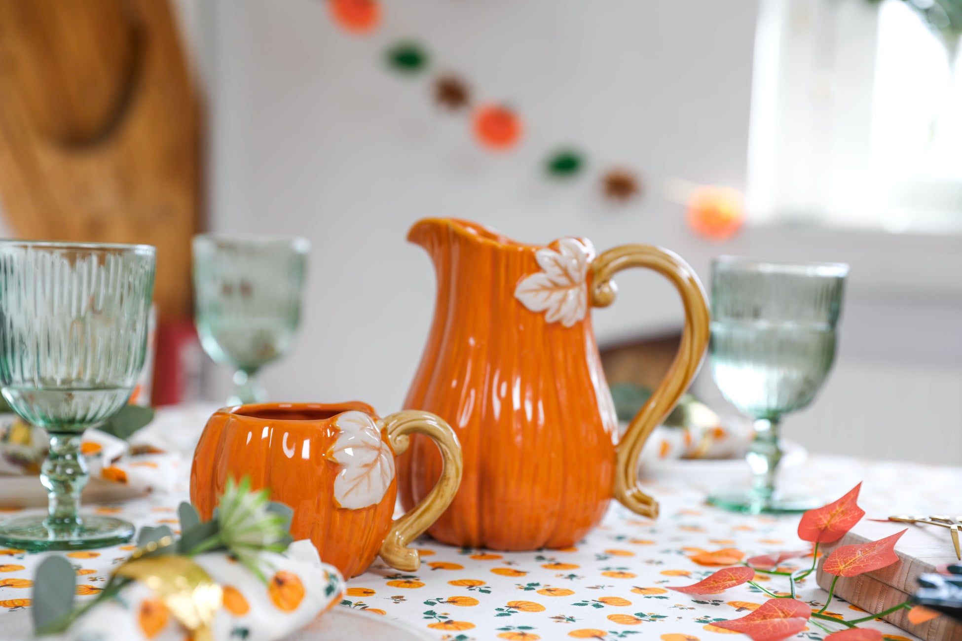 大きなカエデの葉がテーブルの上を秋らしく演出します。