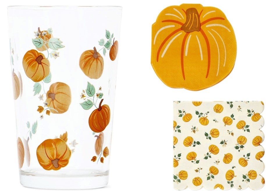 普段使うグラスだって秋仕様に。おやつの時間にかぼちゃ柄のペーパーナプキンを添えて。