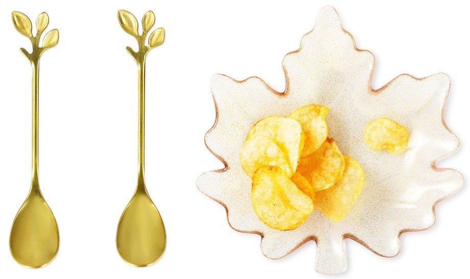 ゴールドのスプーンは先端の葉がポイント!キラキラゴールドのラメ入りプラスチックプレートはピクニックに!