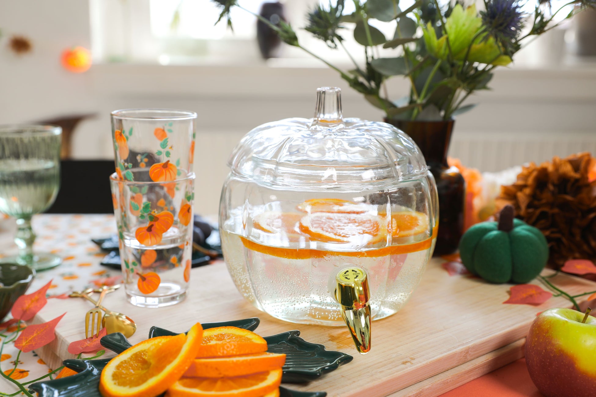 透明なかぼちゃ、それは冷たいドリンクを入れるディスペンサー。なんてすっきり!