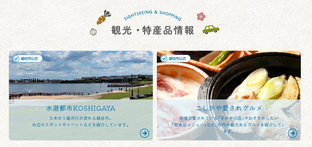 サイト内に備えた越谷市独自のシティプロモーションコンテンツをご紹介します。