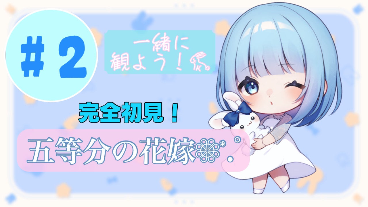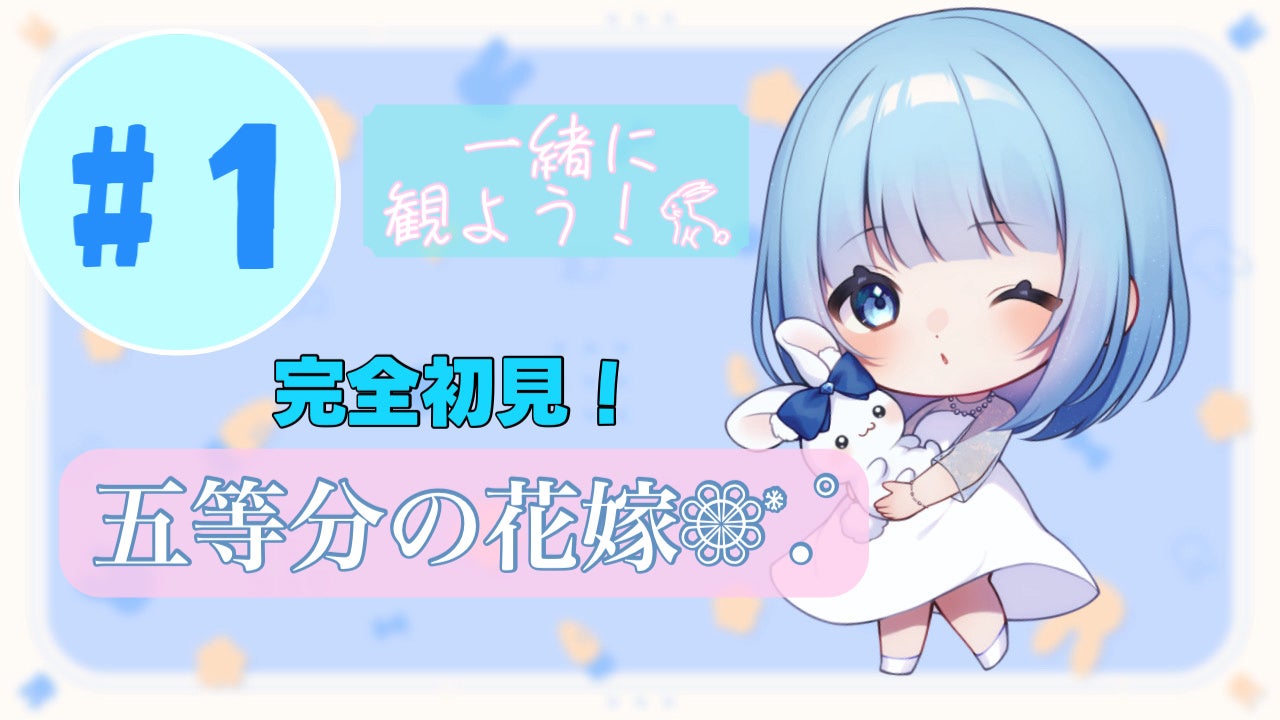 ティア「 心温まるコメディアニメ! 〖五等分の花嫁〗 第1話 五等分の花嫁 ┈┈┈┈┈┈┈┈┈┈ 歌い手をしています、ティアと申します! 完全初見視聴の五 等分の花嫁! ご一緒に楽しんでいただけたらと思います🐇」