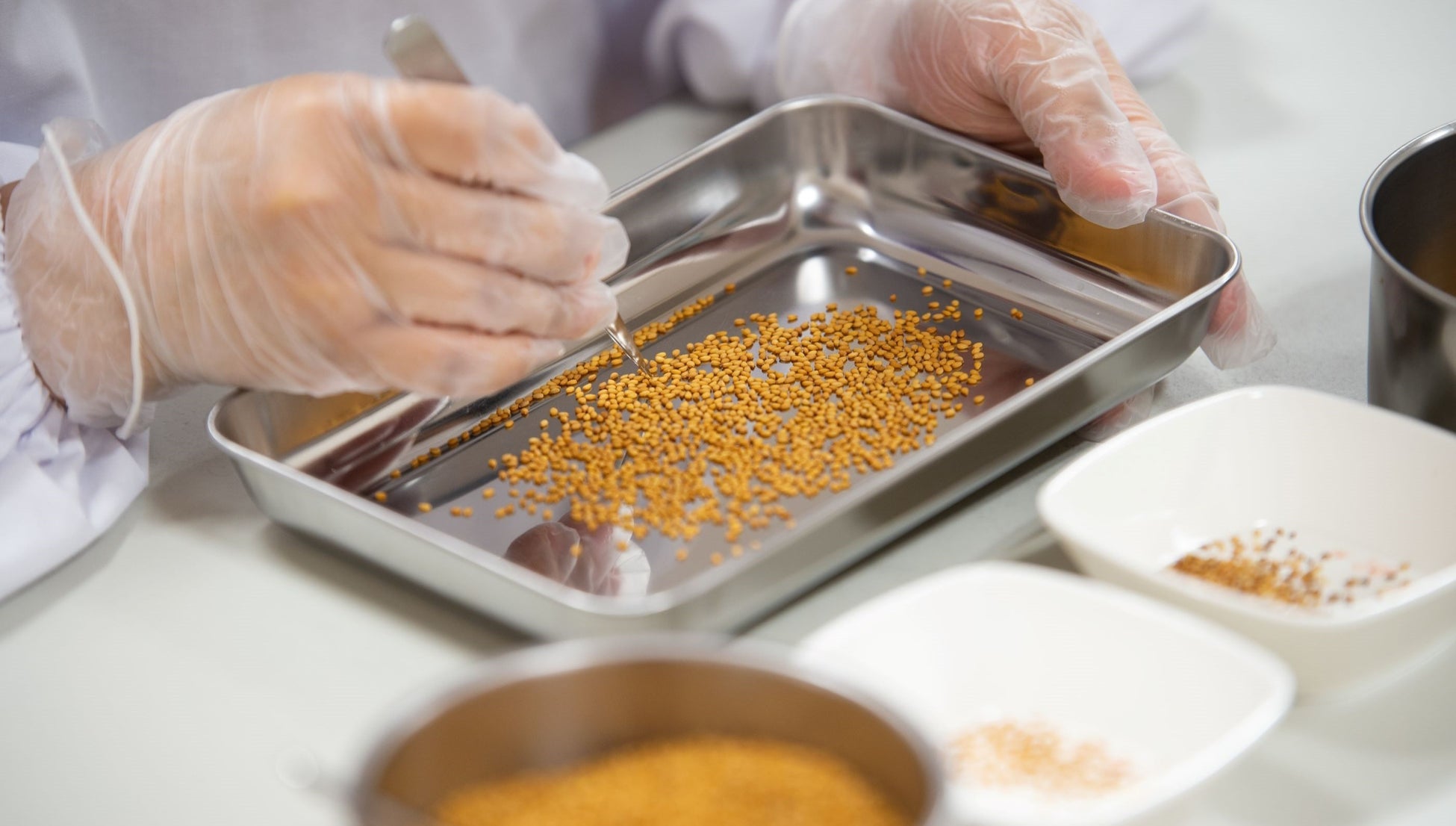 収穫、精選、袋詰めといった一連の作業を利用者が行い、選別は一粒一粒ピンセットで異物を除去しています。