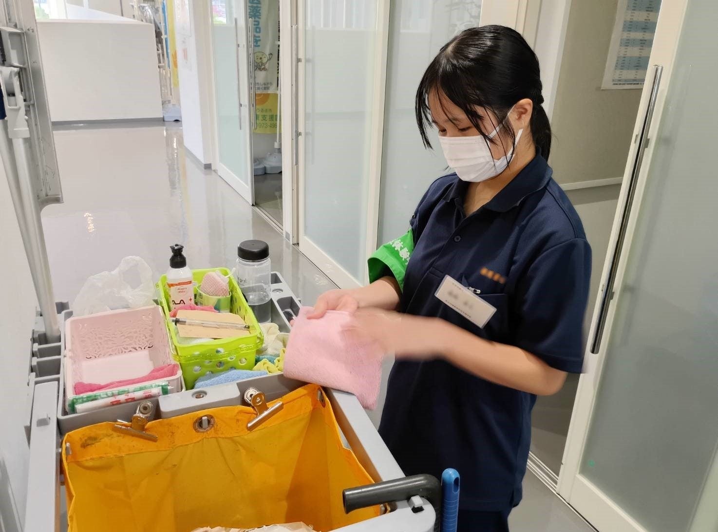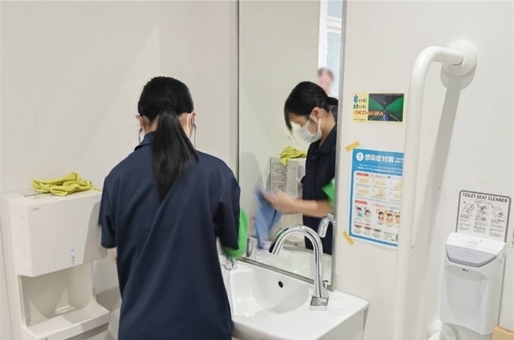 生徒2名は、平日9日間、実際に沖縄日本管財社員が行っているうるま市役所内の清掃、備品整理、来庁者対応などの業務を体験しました。