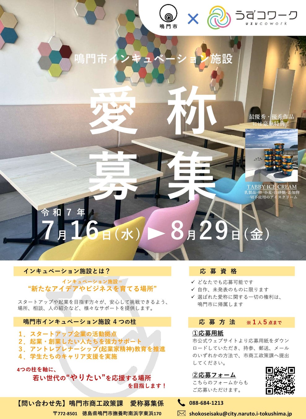 【徳島県 鳴門市役所】若い世代の“やりたい”を応援する インキュベーション施設の愛称を募集します!