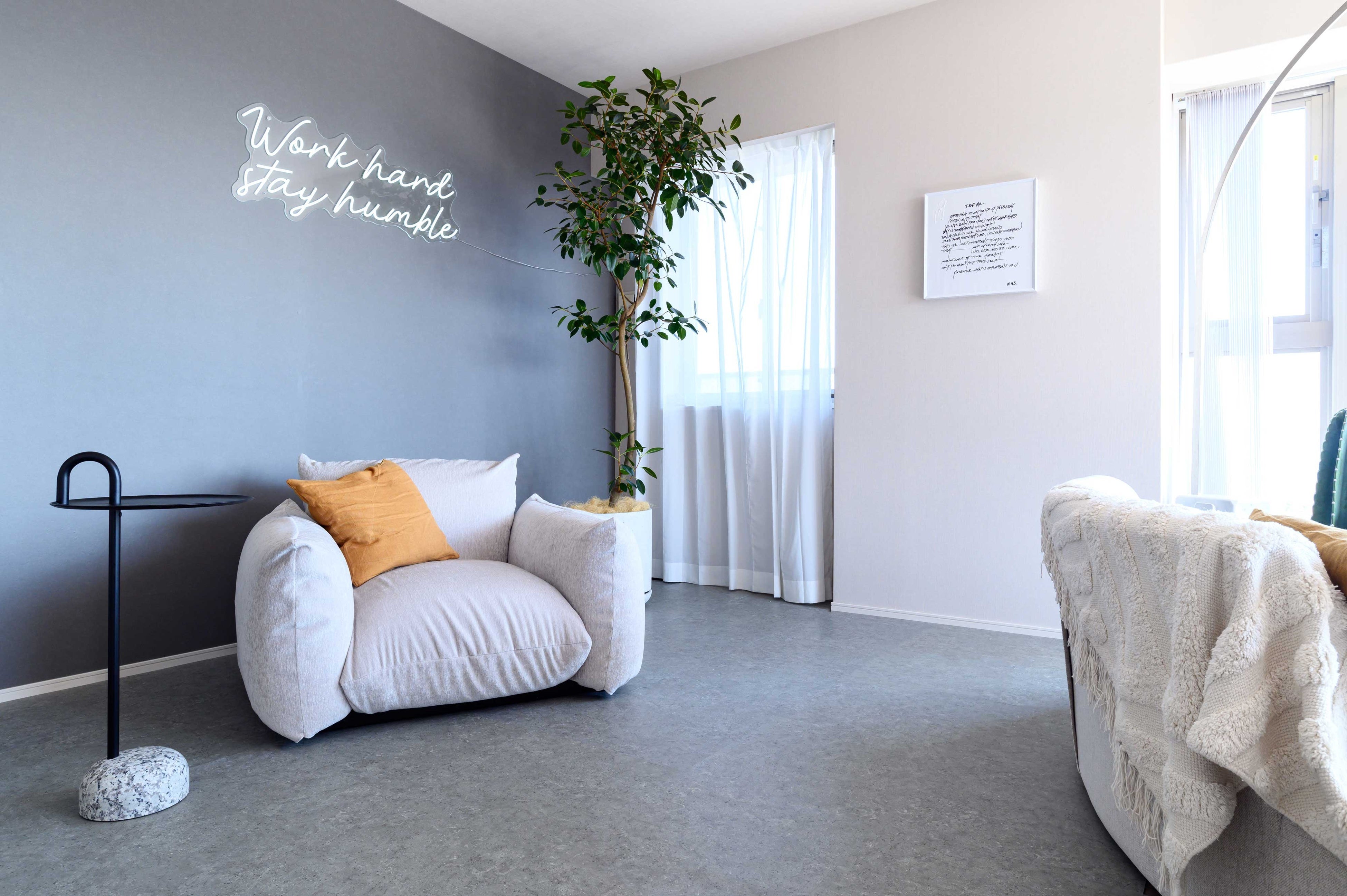 お部屋全体を無機質なイメージにし、ヴィンテージ家具や照明が似合う空間を表現します。