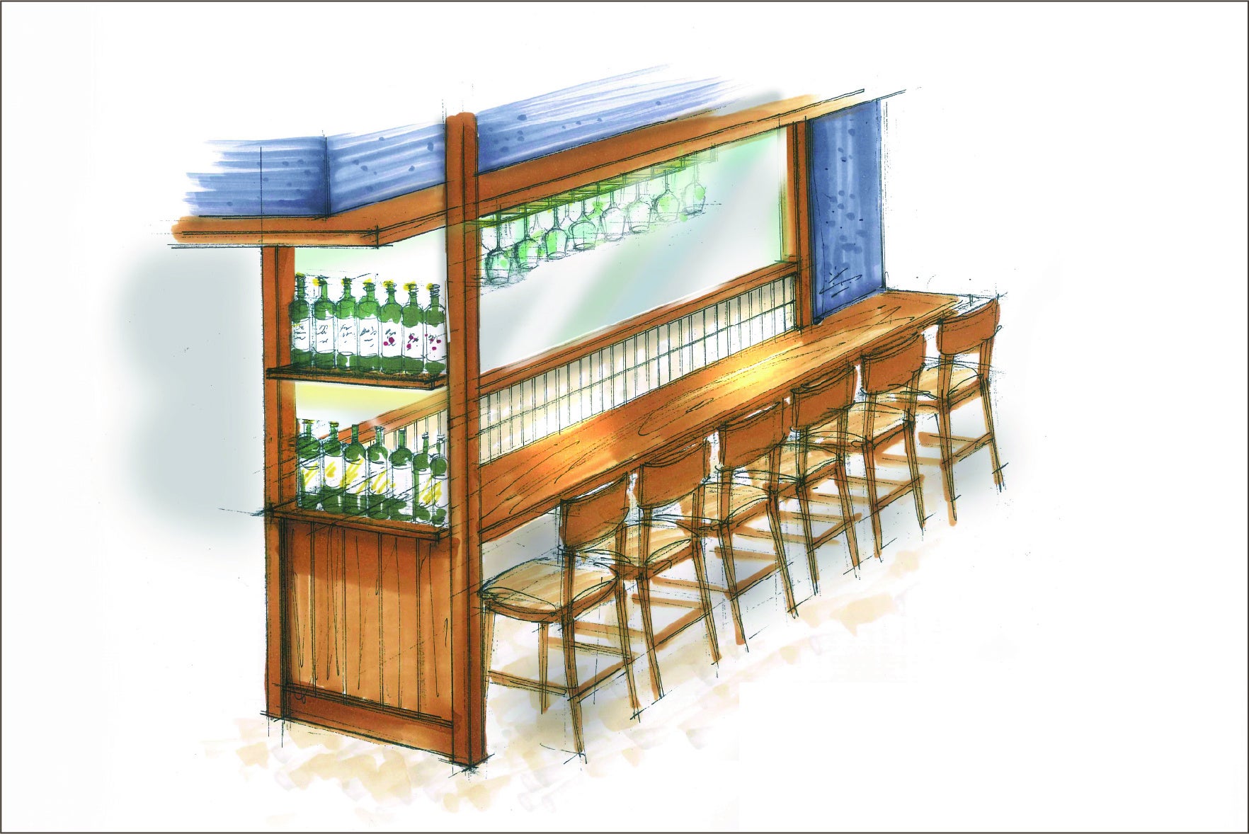 生まれ変わった店内は、緑の絨毯を広げたような豊かな自然が魅力のイタリア中部 トスカーナをコンセプトにした空間が広がっています。トスカーナの風景、オリーブやアーモンドのイラストが温かみや心地よさをさらに演出。お一人でも気軽にお立ち寄りいただける、大人の雰囲気が漂うカウンターもご用意しております。
