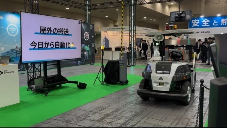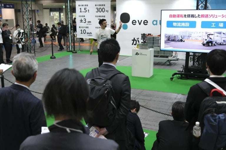 「他のブースでも自動搬送車を見てきたが、eve autoは屋外対応という点で他社製品と一線を画している」