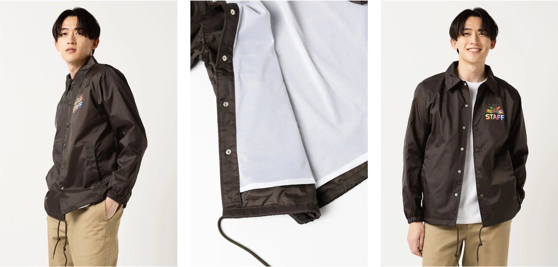 防風性とはっ水性を備えた機能的なコーチジャケット。裏地は起毛で、肌寒い季節にも対応します。刺繍やプリントを入れて、企業ユニフォームやイベントスタッフ用、スポーツの際のライトアウター、日常使いなど幅広いシーンでお使いいただけます。シンプルながら細部にこだわった仕様です。サイズはM~XXL、落ち着いた色味の5色展開。