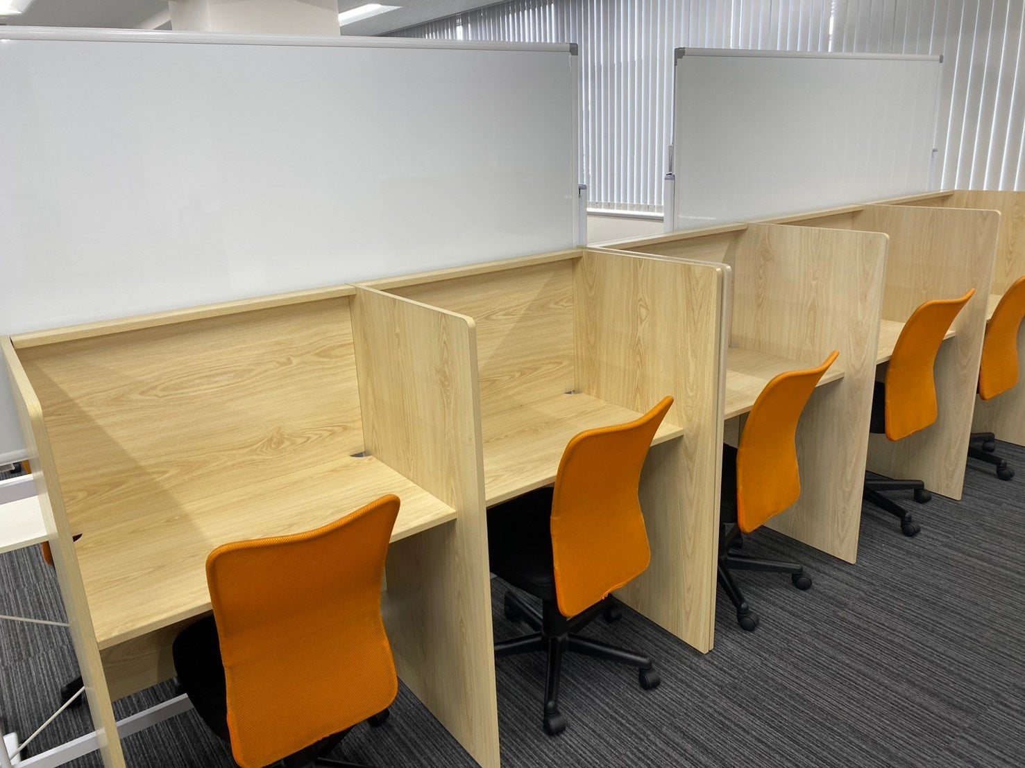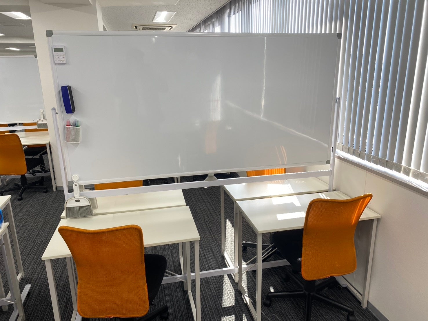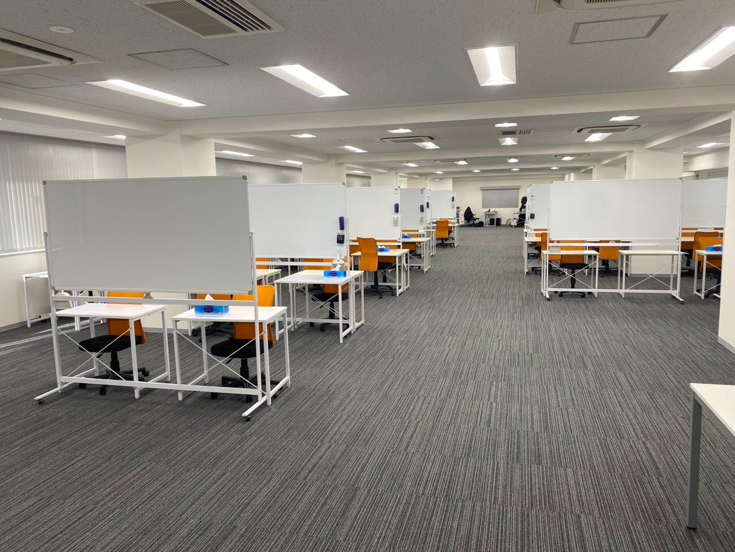 一人ひとりの学習スペースには大きなホワイトボードを完備。複雑な問題の思考過程を図解したり、目の前で要点を書き出しながら解説をするなど「勉強に集中できる」プロセスを可視化することで、より深く、効率的な学習を促します。個別ブースではないので、周りの生徒の頑張りを肌で感じつつも、集中して自分の勉強に取り組める環境となっています。