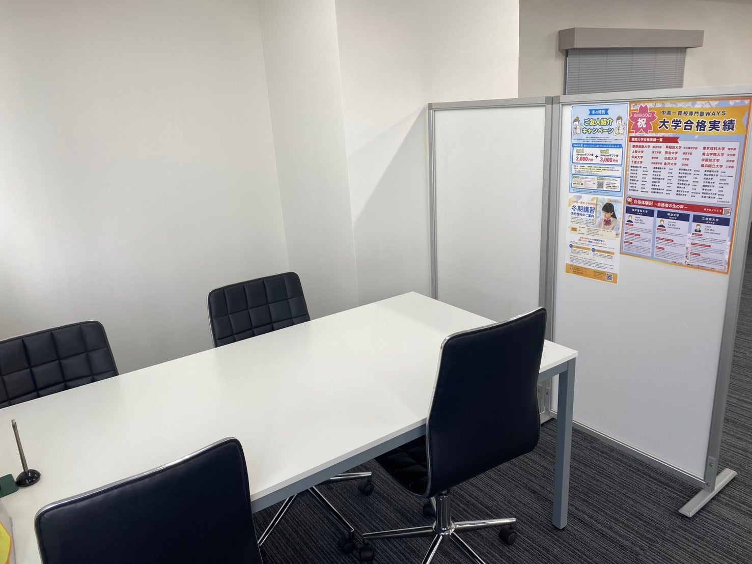 生徒や保護者様と、学習進度や進路についてじっくりとお話しするための専用ブースです。