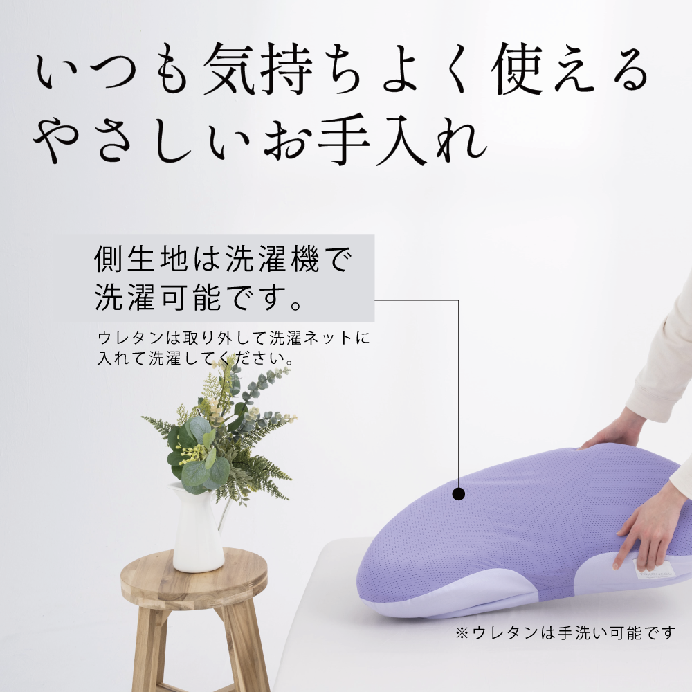 また、側地はもちろん、ウレタンフォームも手洗い可能なためいつでも衛生的にまくらを保つ事が可能となっています。