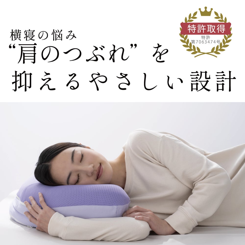 その課題に応えるため、YOKONEGU Premium ℃(ヨコネグ プレミアム ドシー)は、従来のYOKONEGUで採用されている独自のブーメラン形状と二階建て構造を継承しつつ、温度変化に配慮した快適性を目指して開発されました。
