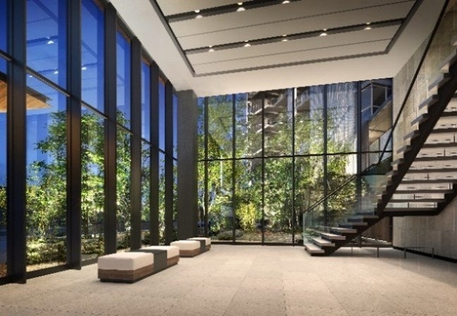 街に豊かな彩りと潤いをもたらすよう、ゆとりある敷地に四季折々の表情が楽しめる4つの庭をはじめ、緑豊かなランドスケープを描きました。別棟エントランスは大きな庇と車寄せが格調高く迎える設えとし、開放的な2層吹抜けのエントランスホールの品格満ちる佇まいが、ゆとりと上質な暮らしを演出します。