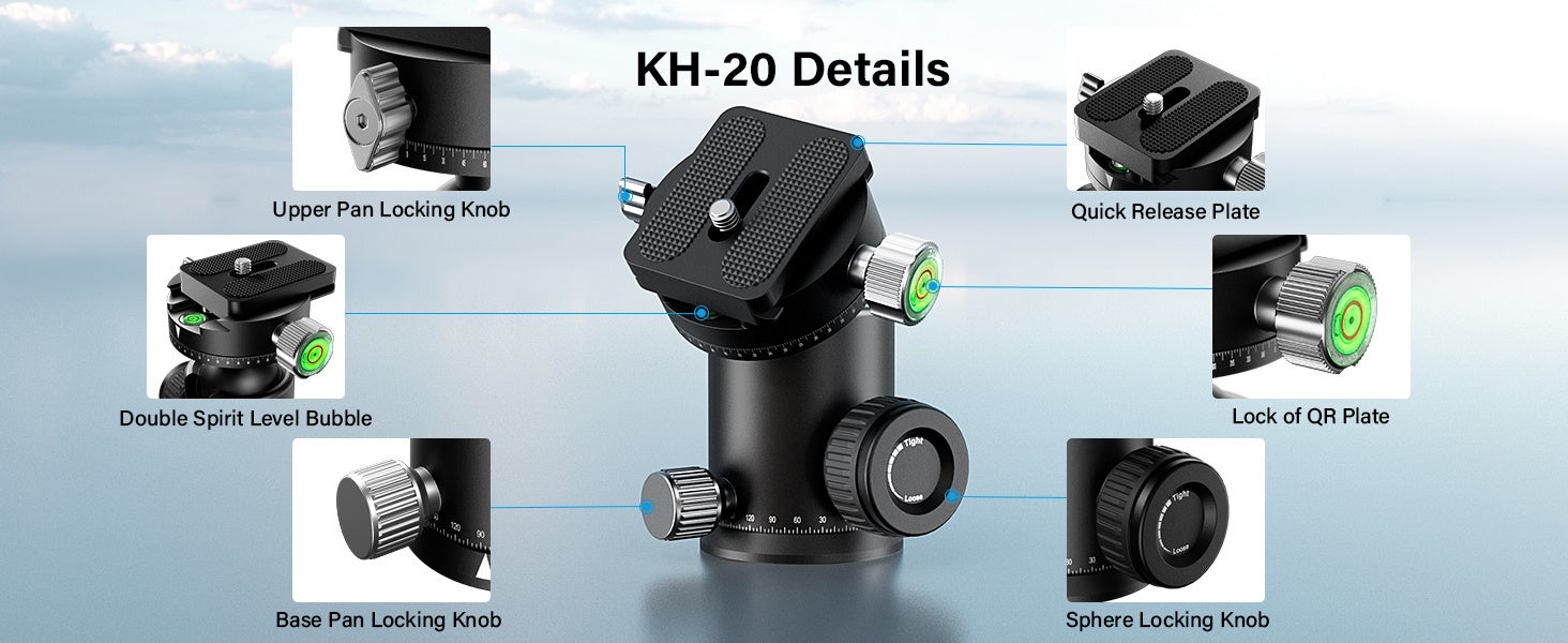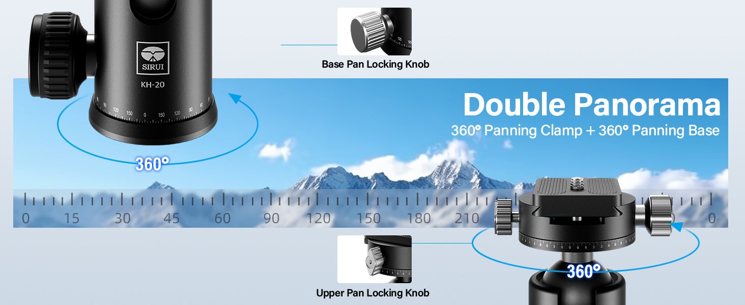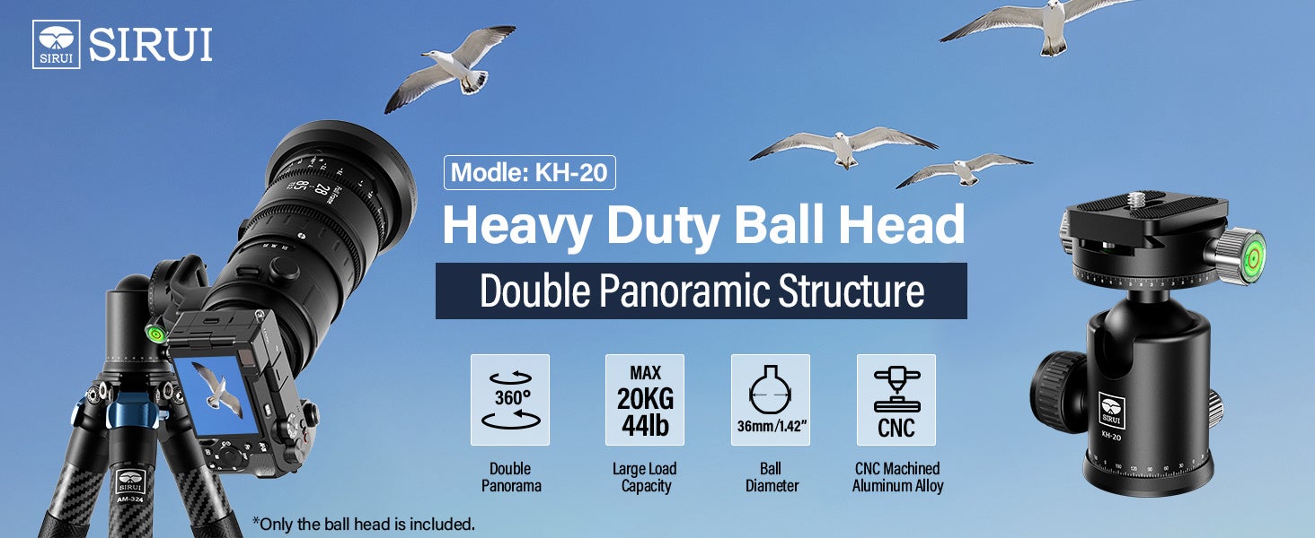SIRUI カメラ用三脚ボールヘッド KH-20|360°ダブルパノラマ機能 36mmメタルボール 1/4インチクイックリリースプレート付き|最大荷重20KG|DSLRカメラ カムコーダー三脚一脚対応