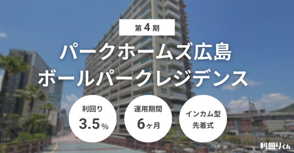 不動産クラファン「利回りくん」、『第4期パークホームズ広島ボールパークレジデンス』を1/13(火)募集開始!